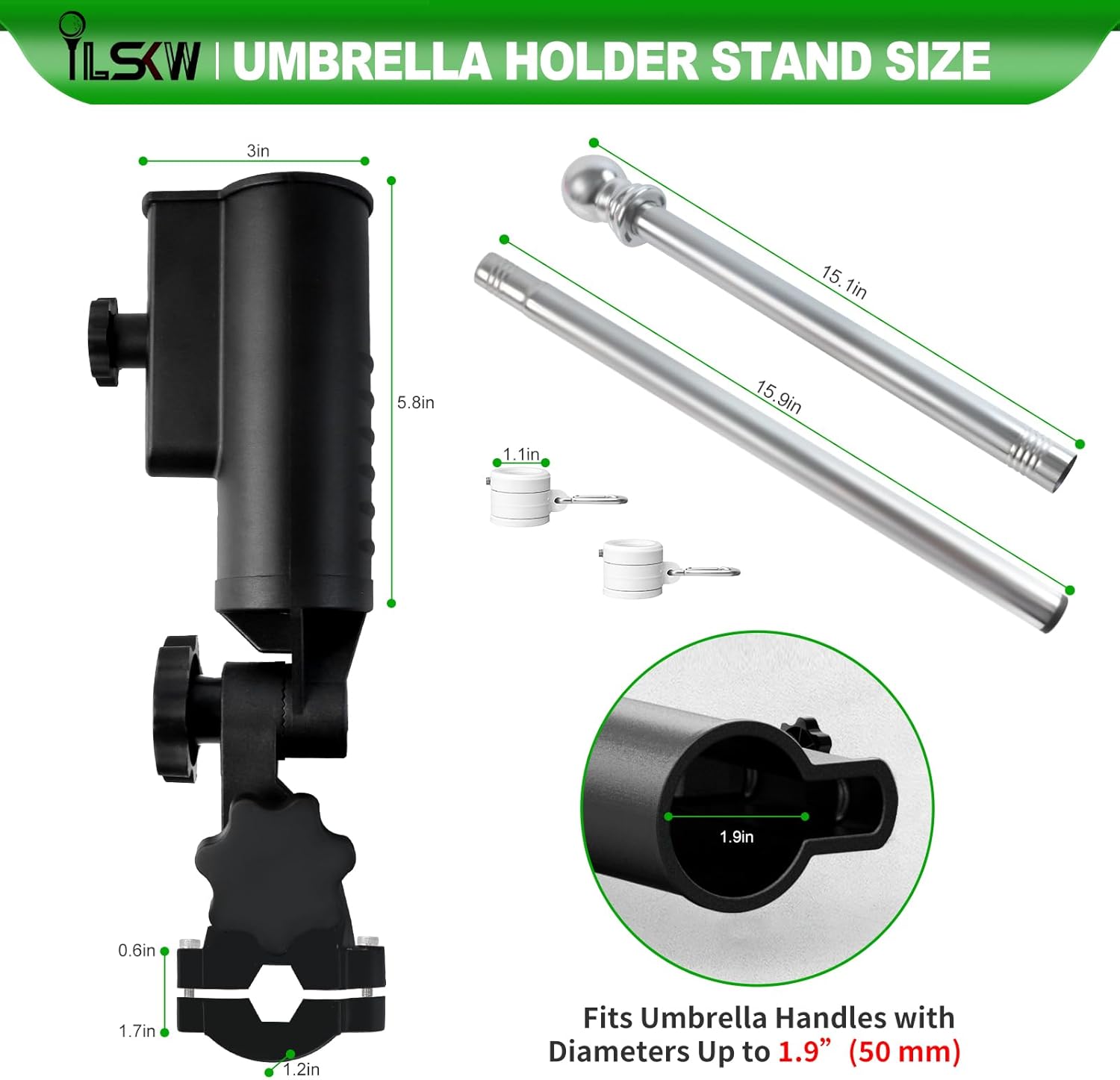 - 360 Degrees Adjustment: Double knobs design, free to adjust the umbrella holder to left or right, forward or backward. Flag pole for any angle of placement. The central rotating made of ABS plastic, and more durable and less likely to crack or break.