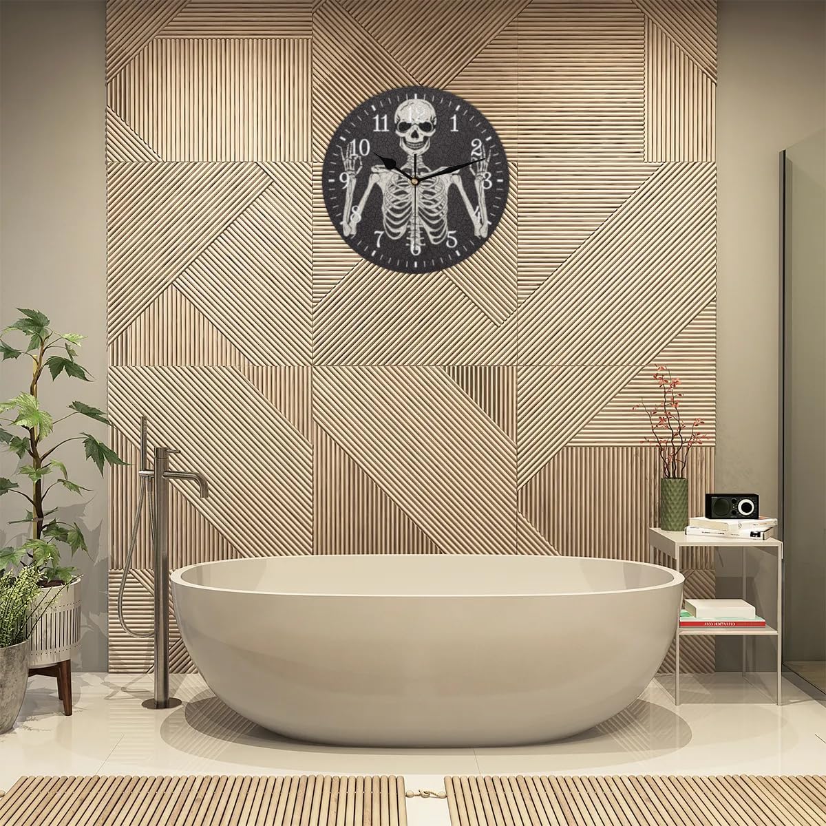 Wall Clock Without Ticking Sound - 25cm Silent Round Clocks Battery Operated Modern Decorative Style Easy to Read for Living Room/Kitchen/Bedrooms/Office/Home Decor/Hallway (Skull)