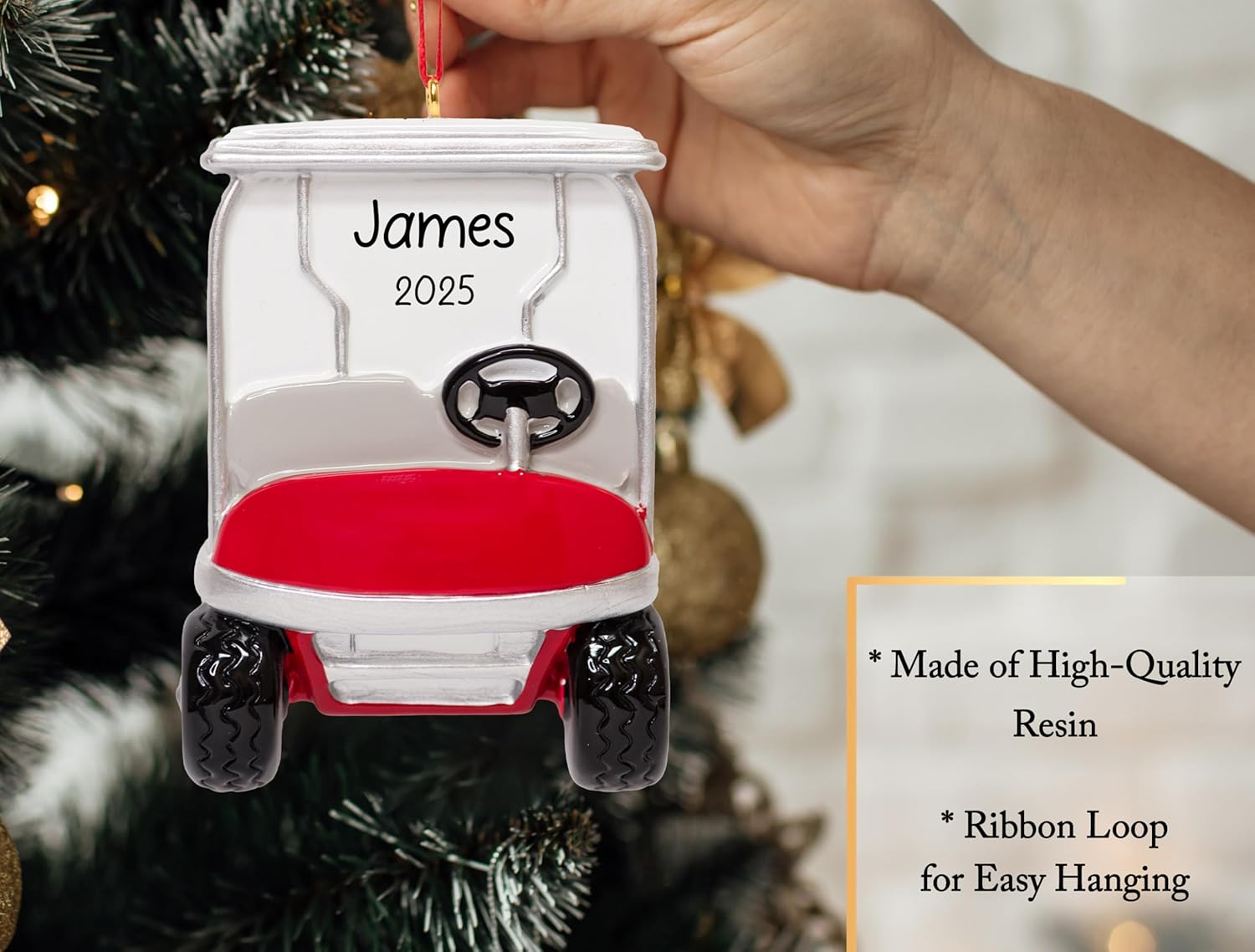 Personalized Golf Cart Christmas Ornament 2025 | Customized Golf Player Golfer Xmas Tree Ornament | Gift for Golfing Lover - Custom Name & Year