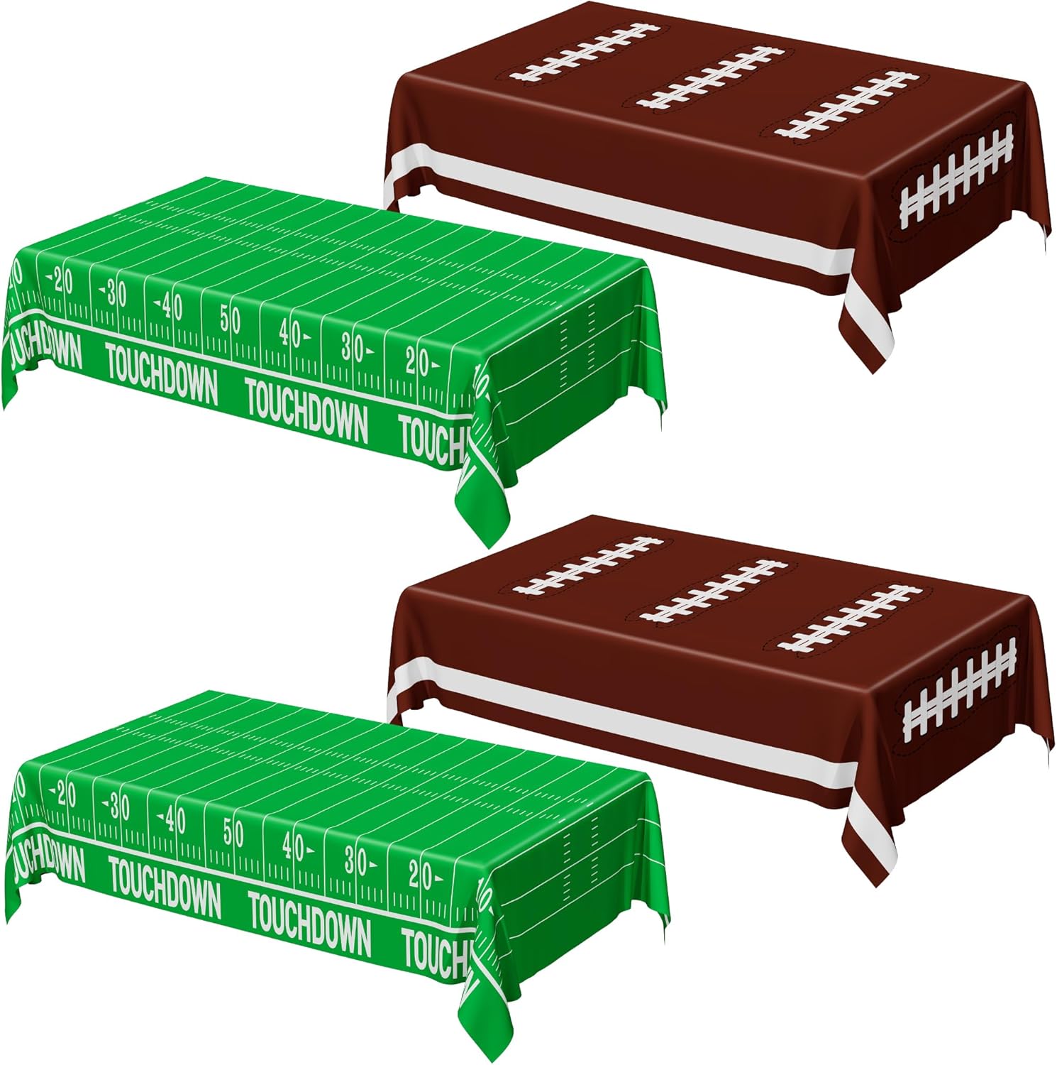 QZYL Football Party Supplies, Disposable Football Tablecloth, 4 PCS Table Cloth with 2 Styles, Touchdown Theme Tablecloths, Plastic Table Runner for Game Day Party Decorations