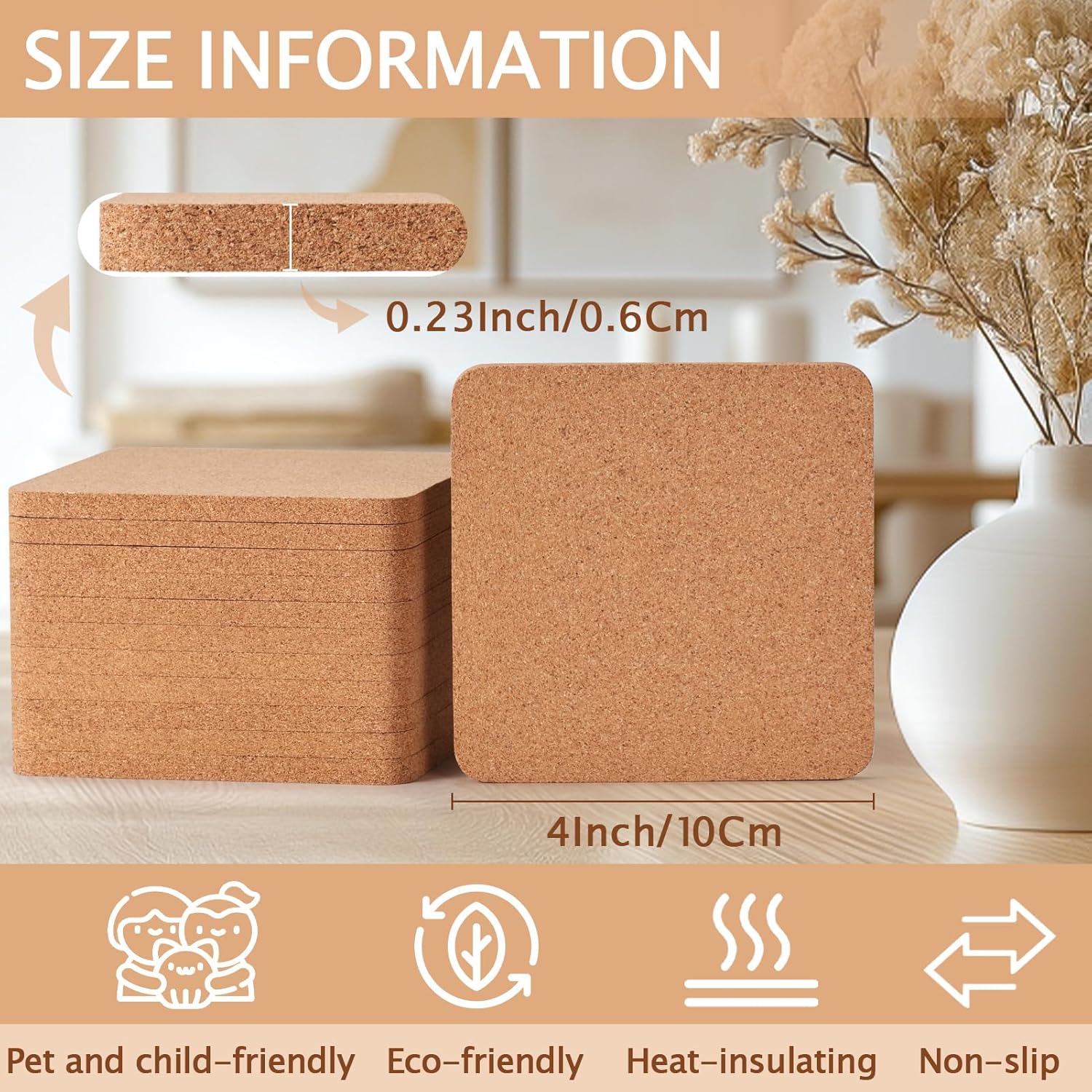 60 Pieces Cork Coasters for Drinks, GOH DODD Thicken Absorbent Blank Coasters for DIY Crafts Laser Engraving Sublimation Wood Burning Plants Painting Housewarming Gifts Wedding, Square, 4 Inch