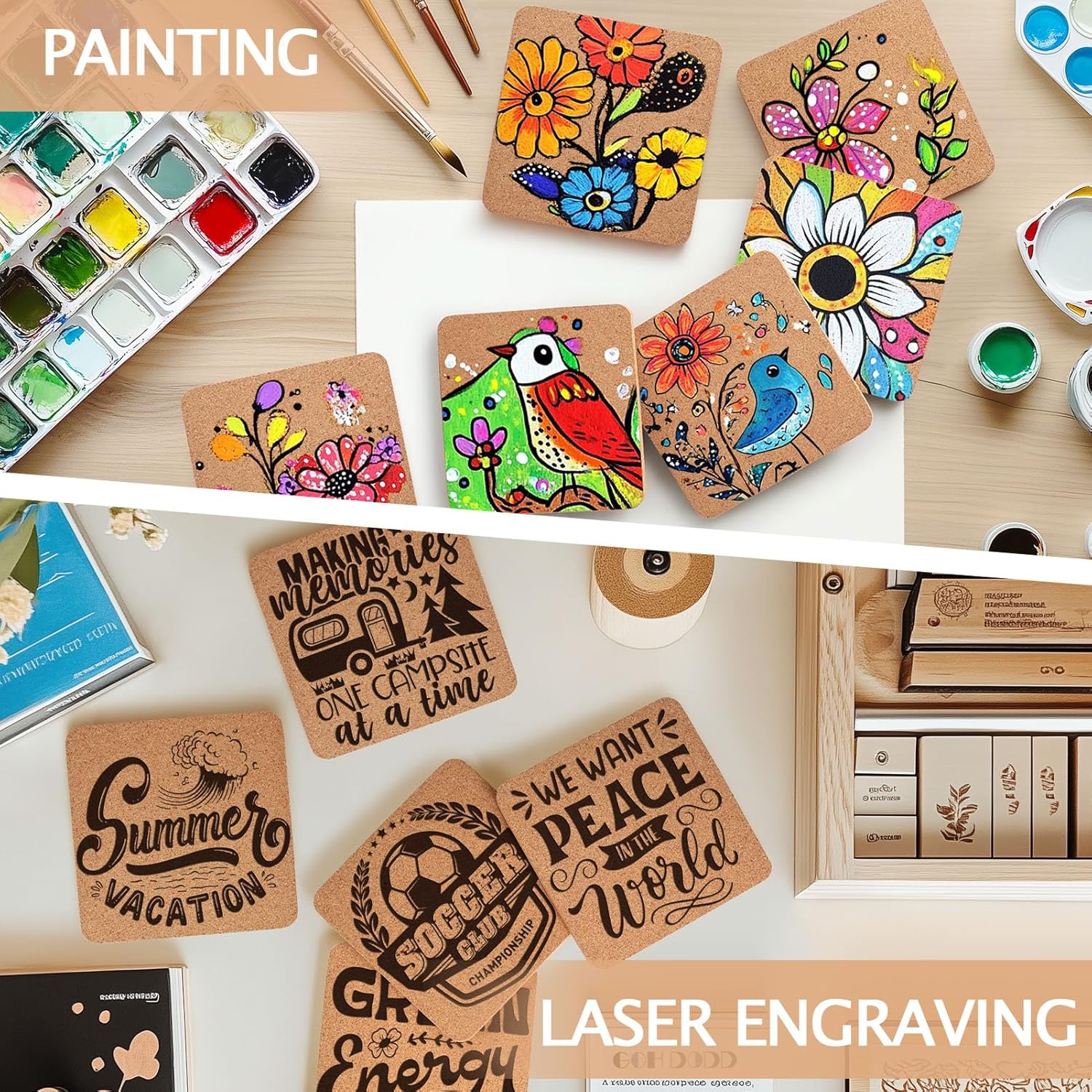 - PERFECT FOR LASER ENGRAVING, HEAT TRANSFER, WOOD BURNING: Whether you want to engrave intricate patterns with a laser, transfer unique designs with heat printing, create vintage effects with wood burning, these coasters can easily accommodate all of these methods.