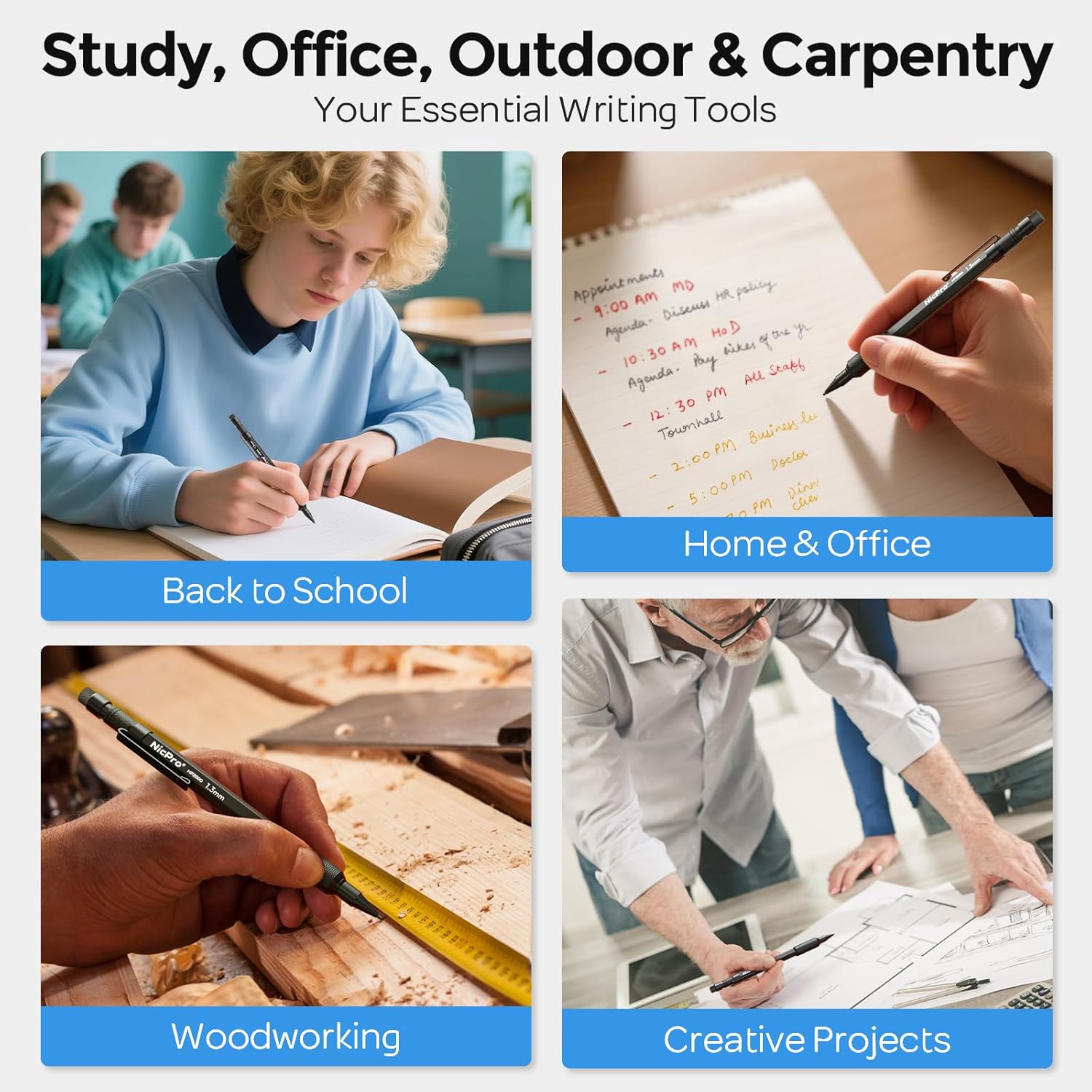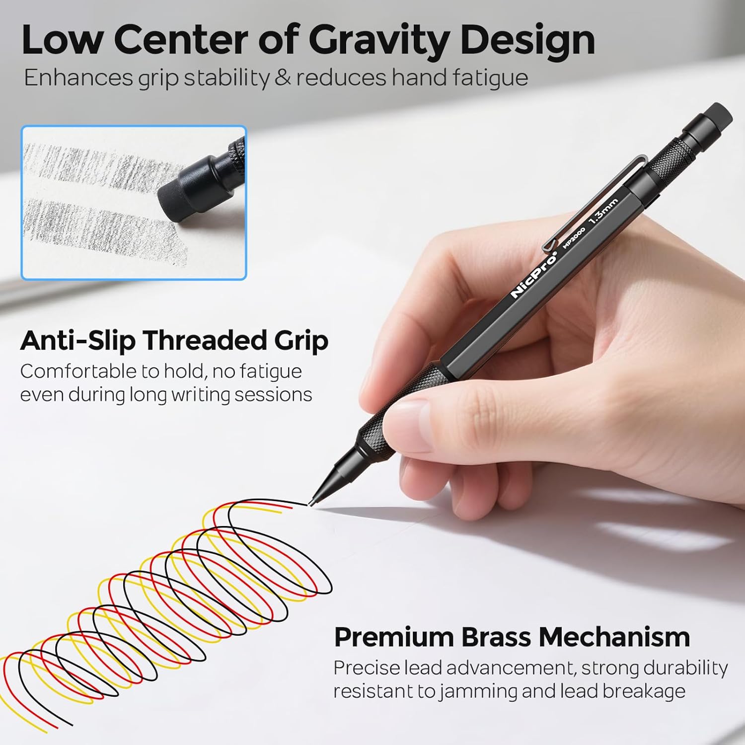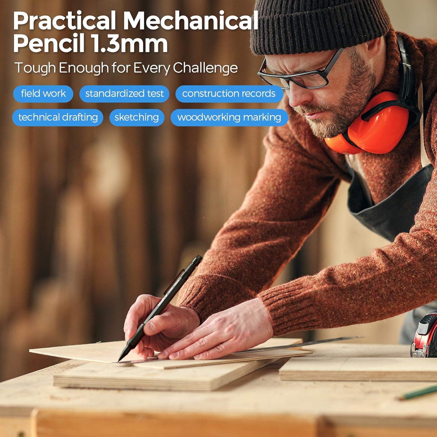 - Versatile Use: This mechanical pencil 1.3mm with a thicker lead, it's perfect for a variety of tasks, including technical drawing, daily writing, and construction marking, making it a versatile tool for different settings like engineering, woodworking, art or daily office use