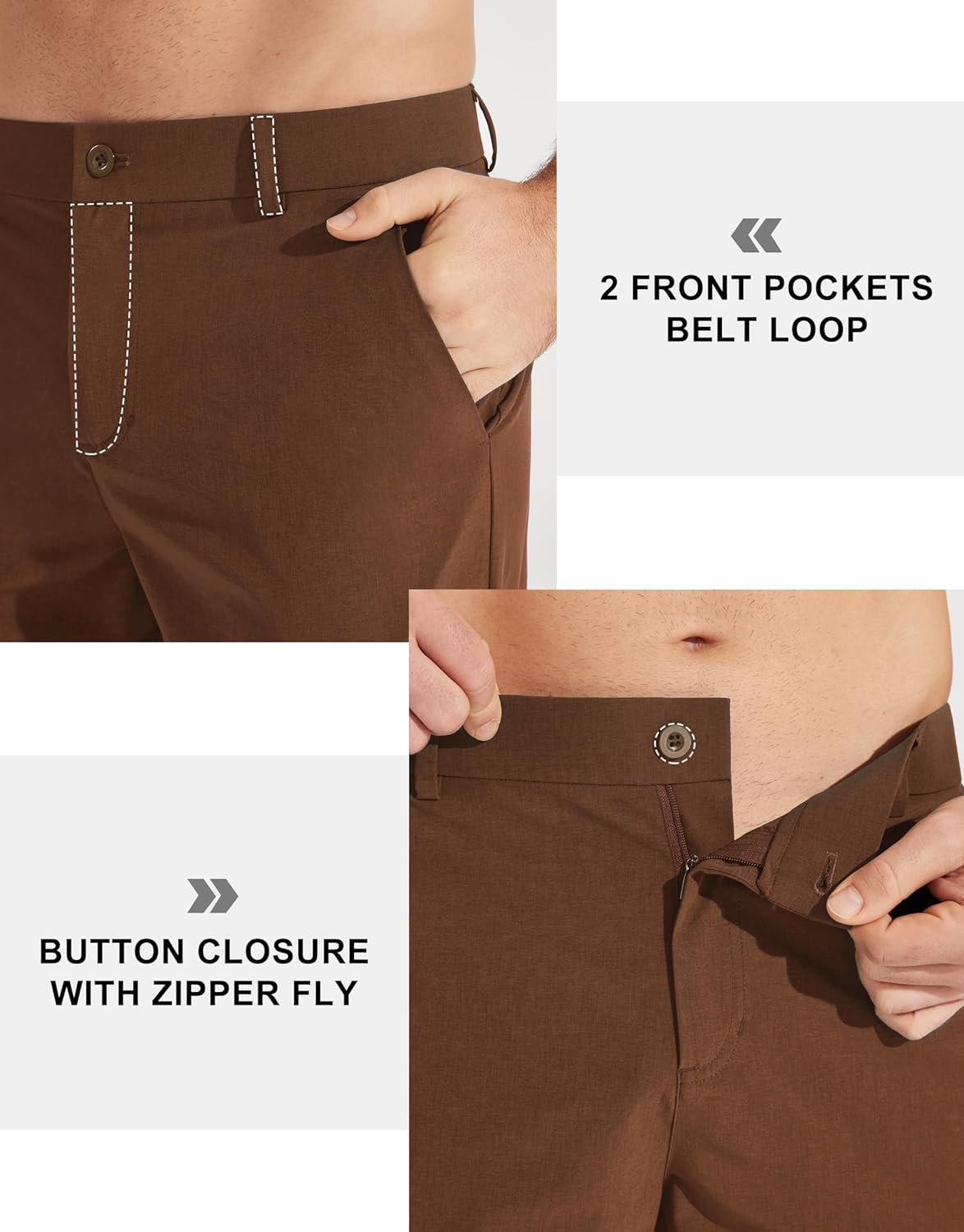- Detail designs: Belt loops allow these mens dress pants fit to your waistlines, button closure with a zippered fly, 3D-cutting design fits most men's body type, sits at the waist with a straight leg