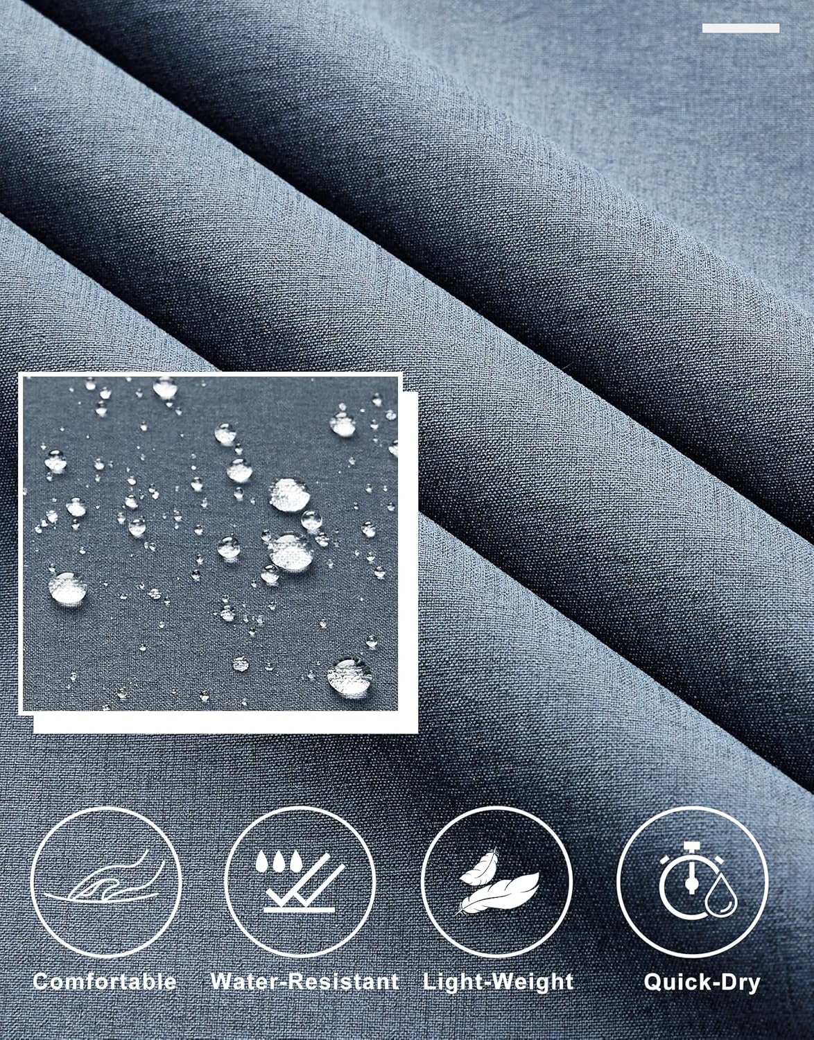 • Comfort Fabric: Lightweight, stretchy, quick dry, moisture wicking fabric keeps you dry and cool all day, gentle stretch and shape-retention, water-resistant capacity to help resist light rain for a short time. PS: Although the pants may arrive with some creases due to packaging, a simple water wash will eliminate them