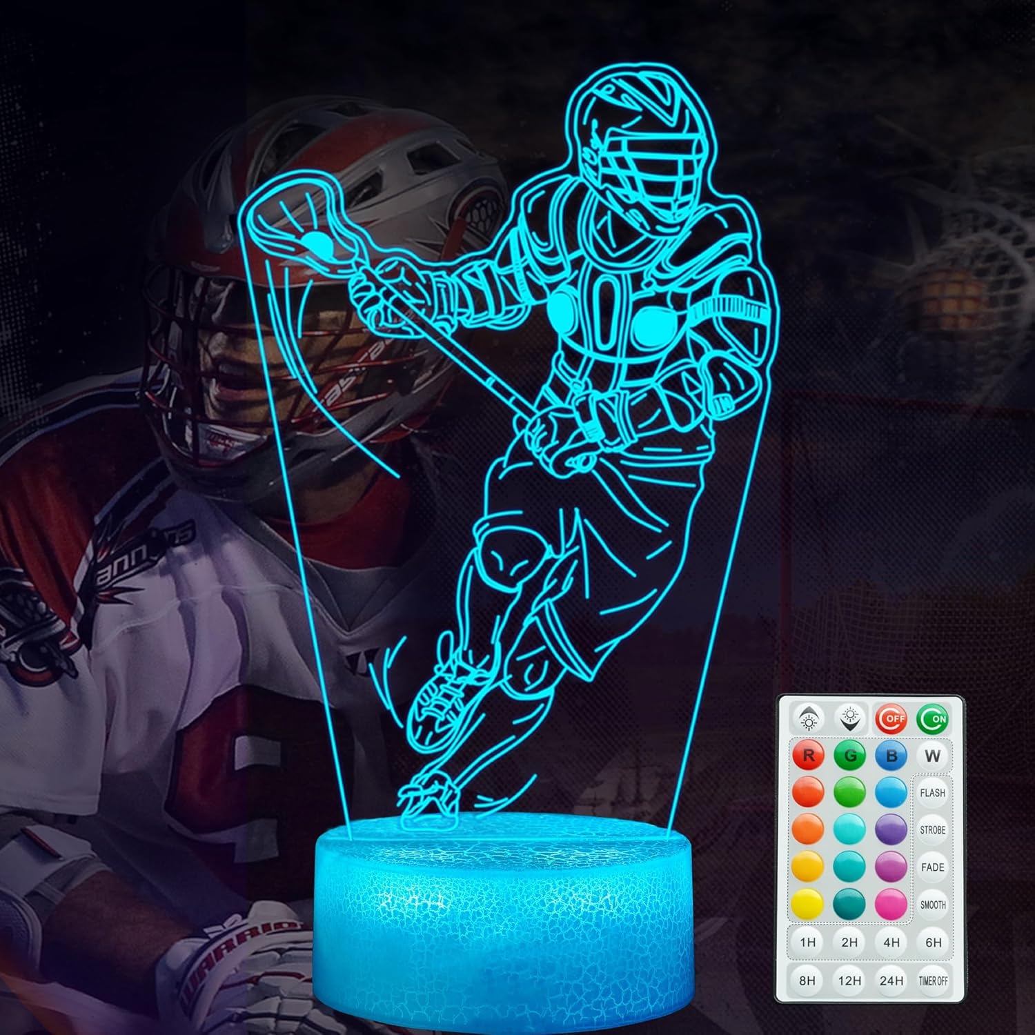 Lacrosse Gifts for Men, Lacrosse Night Light with Remote Control, 16 Colors Changing, Timer, RGB Flashing Mode and Dimmable, Gifts for Boys Christmas Decor