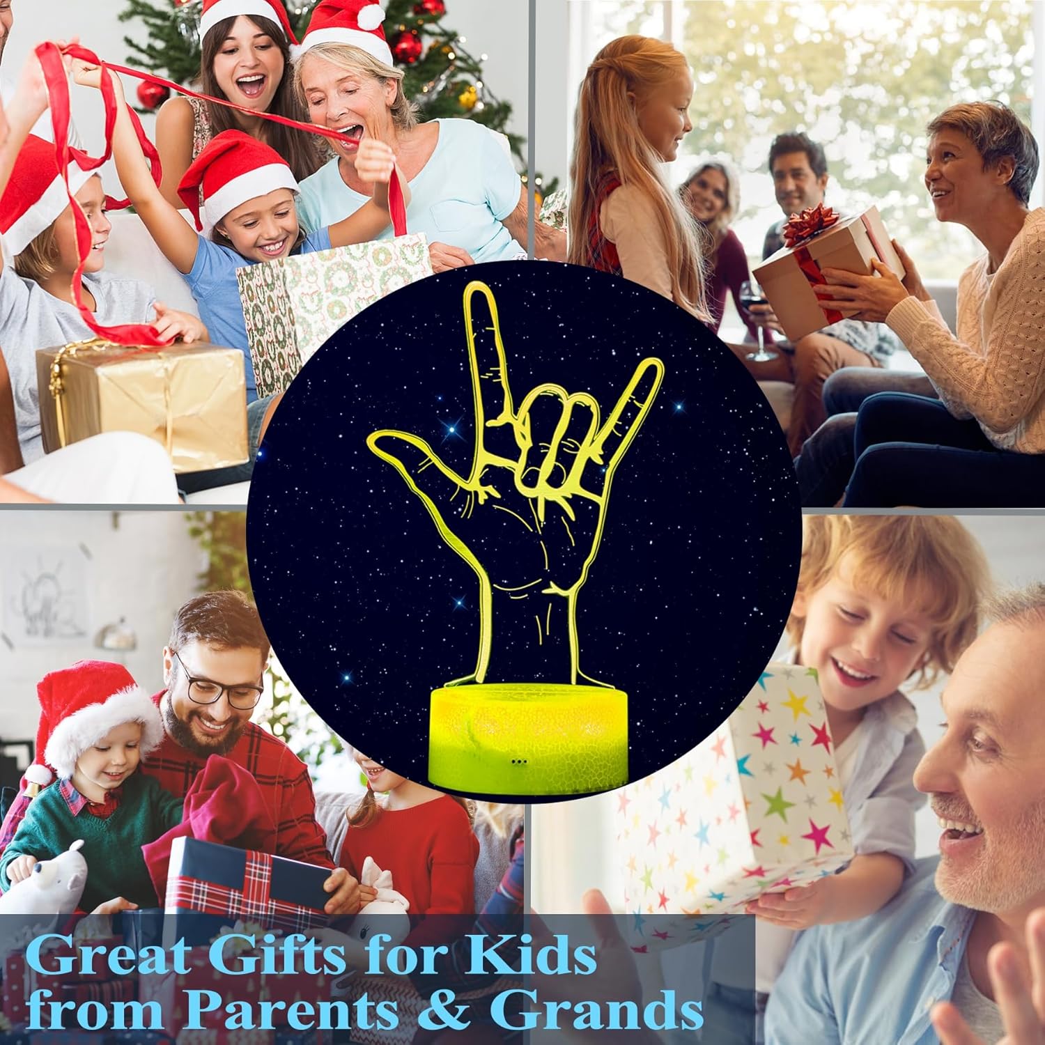 I Love You Night Light, Loving You Hand Sign, Lover 3D Illusion Lamp with 16 Colors Changing, Timer, 4 Flash Modes and Dimmable, Men Women Boys Girls Room Decoration, Holiday Xmas Gifts