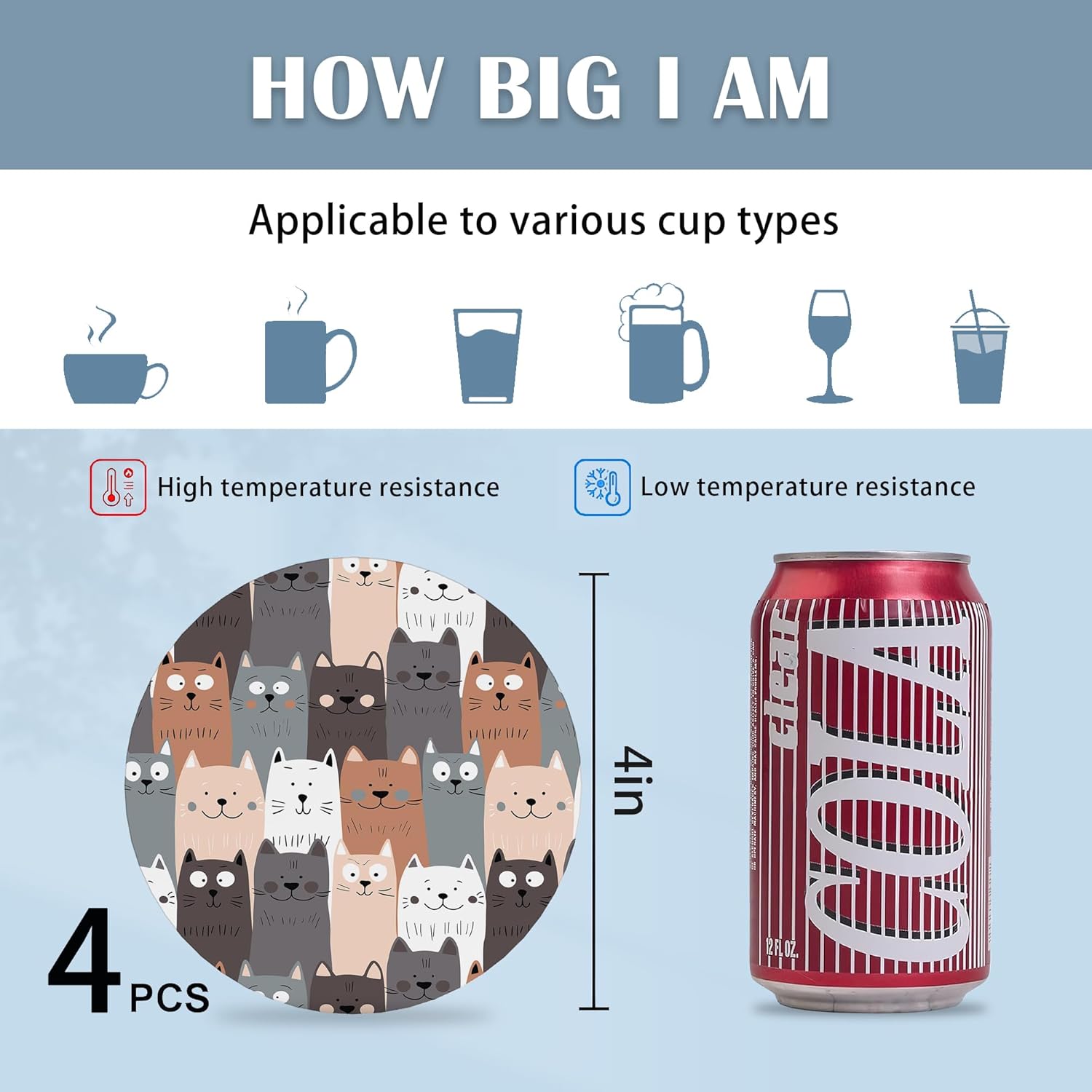 - Suitable Size:Coasters with a big 4 inches diameter size match almost all types of cups and mugs,making them fit with coffee cups, sports bottles and wine
