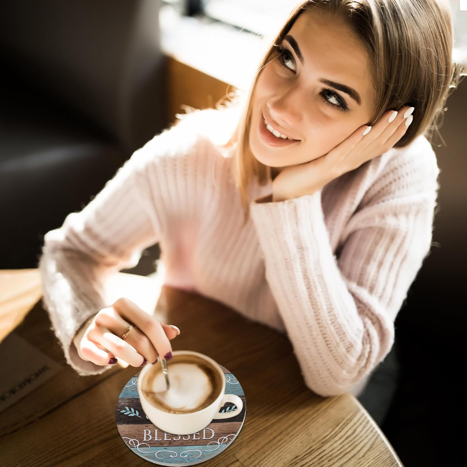 Coasters for Drinks,Set of 4 Absorbent Coasters,Thankful Grateful Blessed Ceramic Coasters with Cork Base,Cup Coaster for Coffee Table Protection,Gifts for Housewarming Birthday