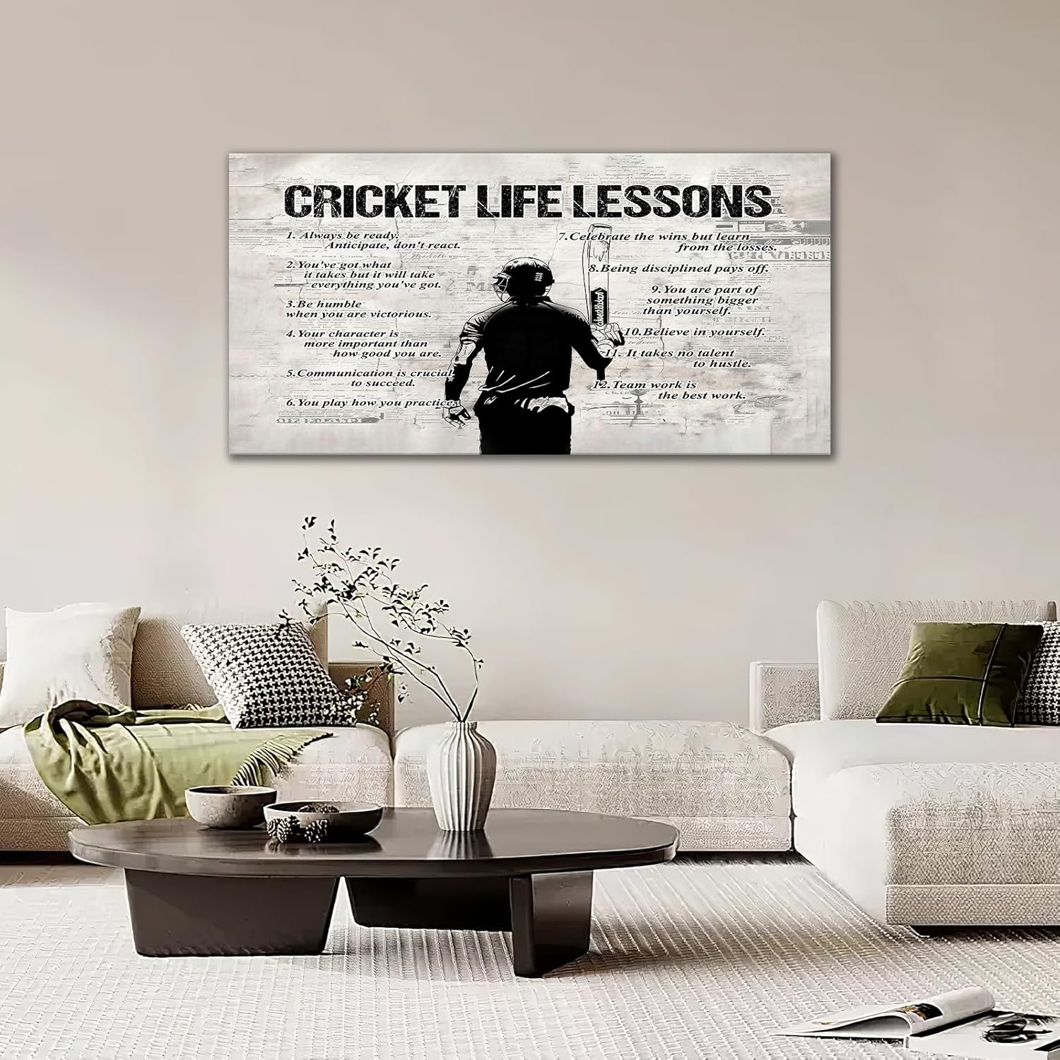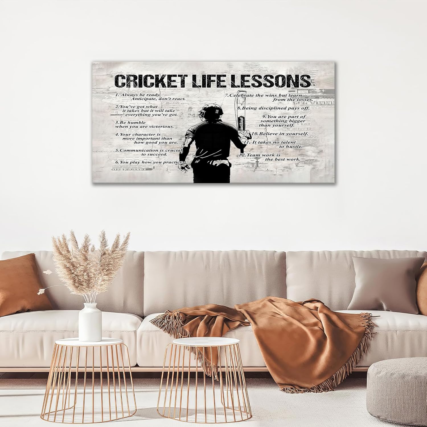 Cricket Sports Wall Art for Living Room Large Size Cricket Life Lessons Wall Decor Cricket Sign Retro Canvas Prints Inspirational Pictures Painting Artwork Home Decoration Master Bedroom Gym 60"X30"