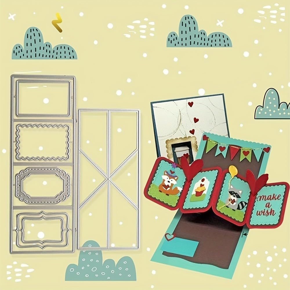 Lapoo Cutting Die for Scrapbooking, 3D Backgrounds Frame New Cutting Dies DIY Album Card Making Decor Paper Craft Metal Die Cuts Party Decorations (Stereo Folding Frame 5.4 x 4 in)