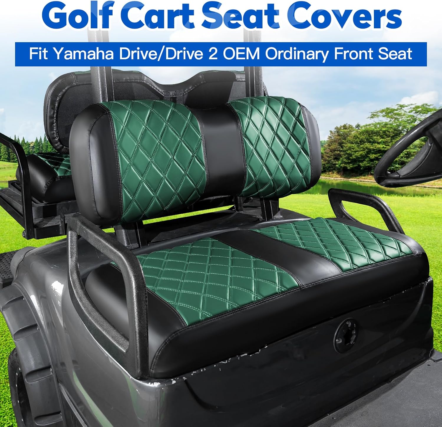 - NOKINS 4PCS Front&Rear Seat Covers Kit (Dark Green&Black): Front Seat covers Fits for YAMAHA/G29/Drive2 Golf Cart OEM Standard Seat Cushions. REAR SEAT COVERS FITS AFTERMARKET STANDARD SEAT CUSHIONS ONLY (B SHAPE).