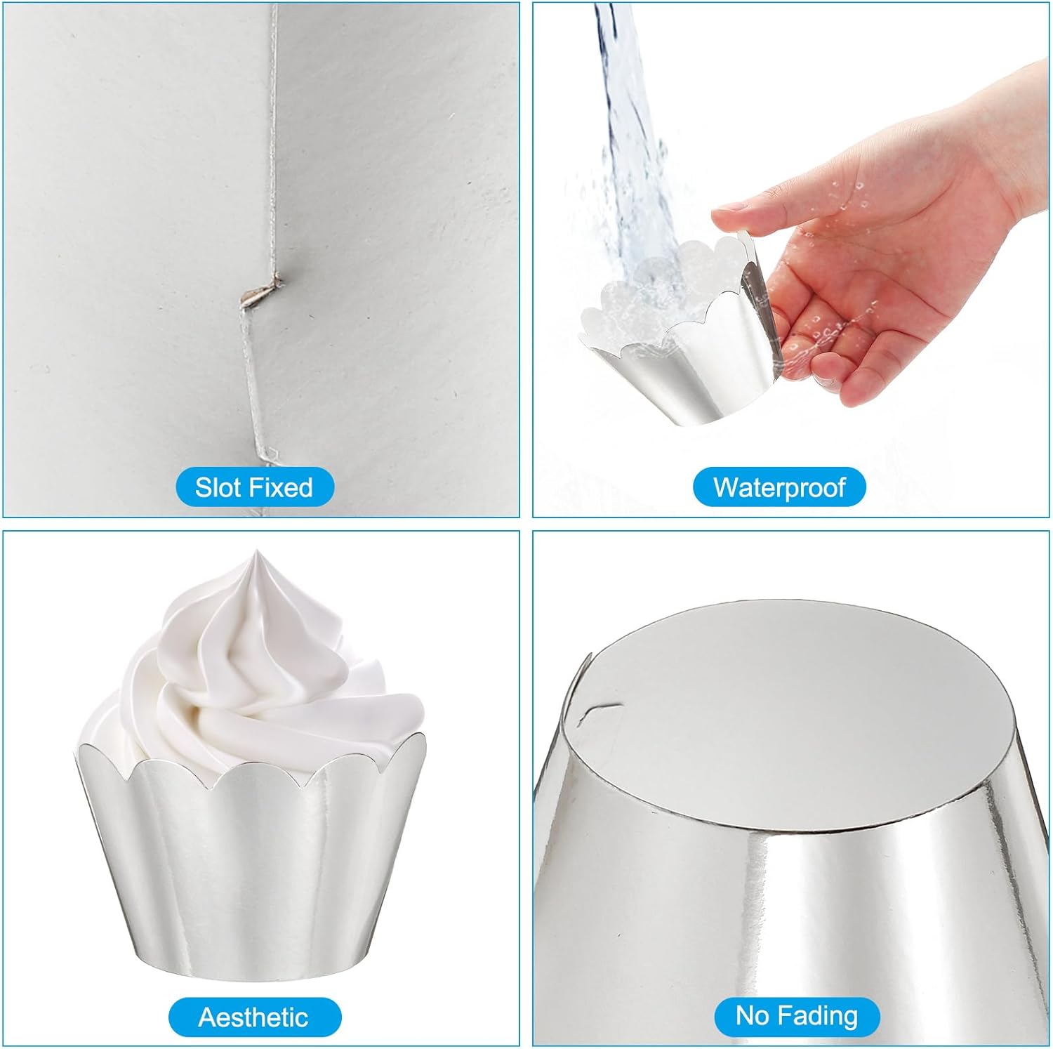 - Color: Reflective Silver; Material: Paper; Expand Size:21 cm x 8.5 cm x 5 cm / 8.26 x 3.34 x 1.96 inch(L*W*H); Packing List: 50pcs x Cupcake Wrappers