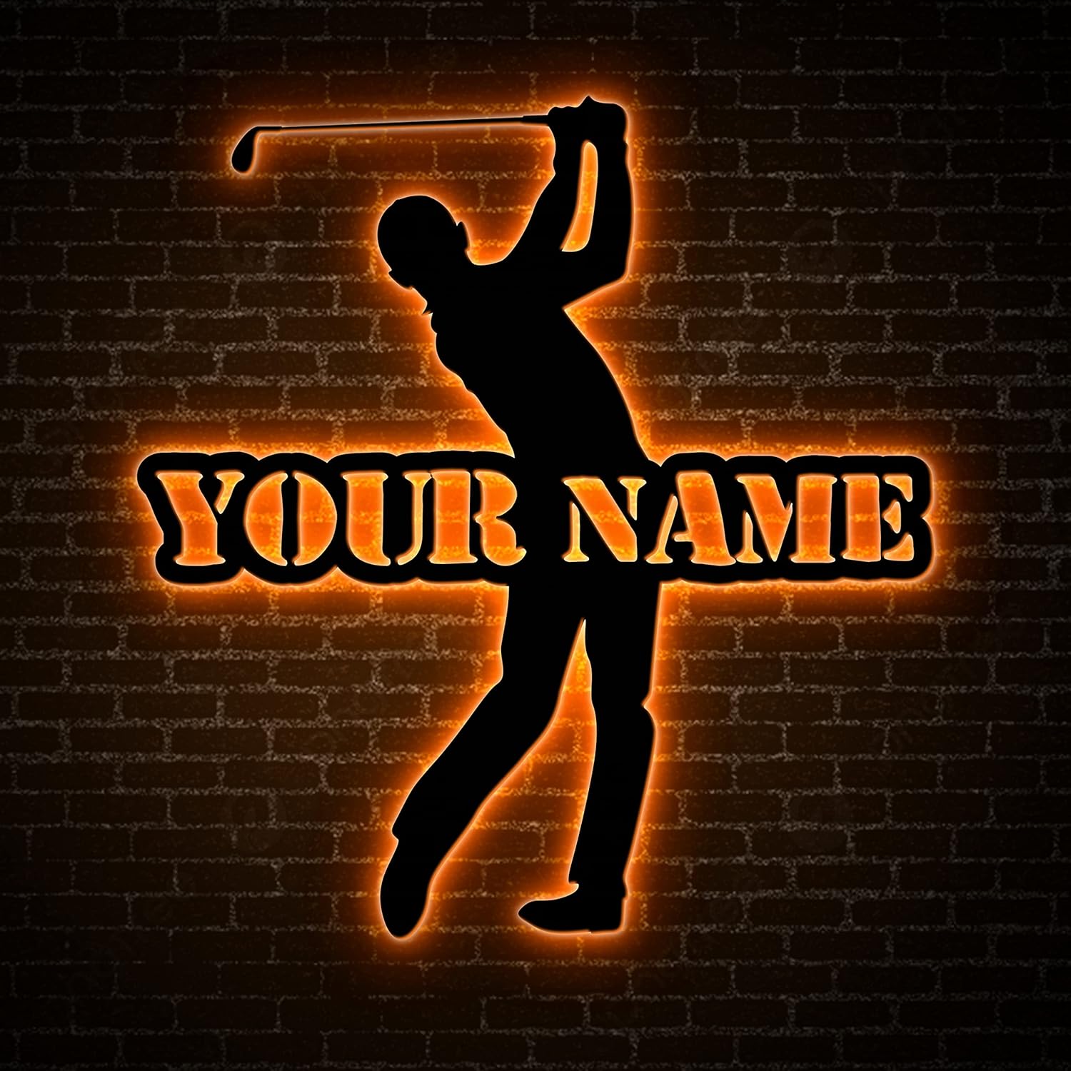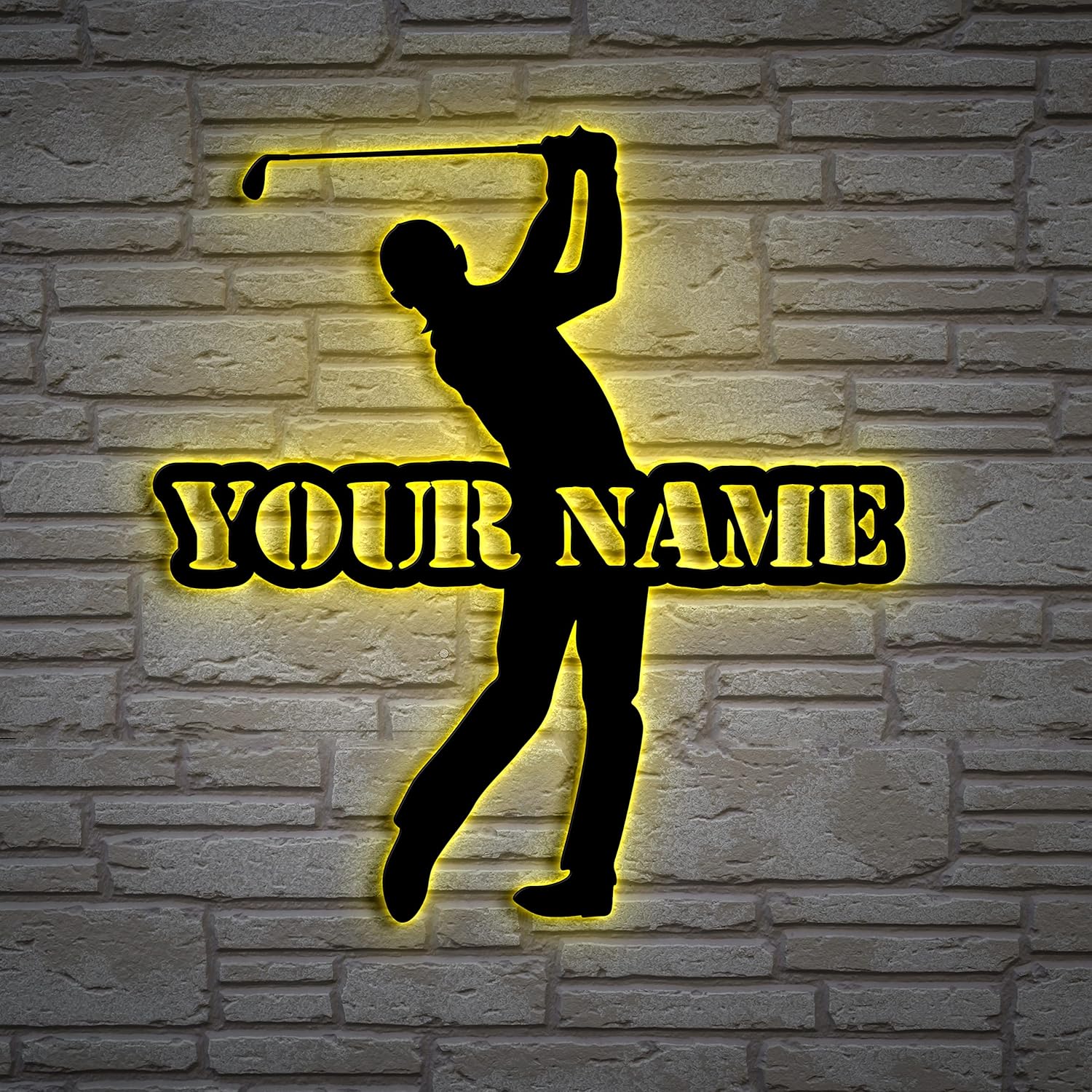 Custom Golfer Metal Wall Art with Led Light, Personalized Golfer Name Sign Home Decor 19th Hole Golf Club Decoration, Home Decor,Custom Golf Name Sign Decor, Gift For Dad, Son, Sports Lovers, Christmas Gift