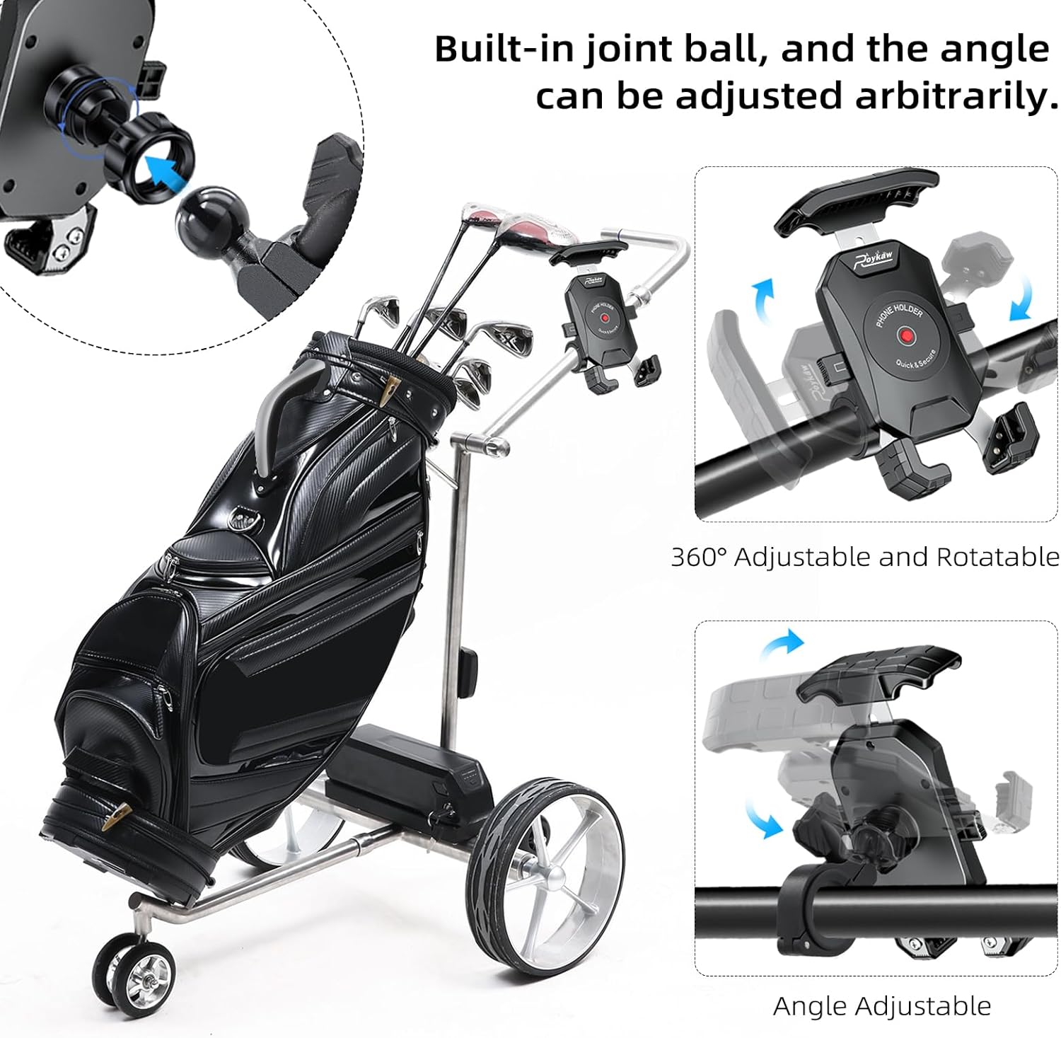 Roykaw Golf Push Cart Phone Holder Mount Compatible with Caddytek,Clicgear,Sun Mountain,Rovic, Caddy, Bag Boy,Golf Push Cart Accessories for Cell Phones,Full Silicone Protection/ 360°Rotatable