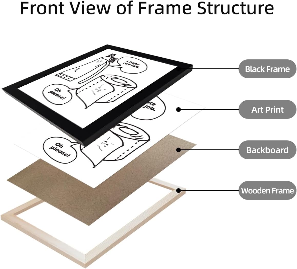 - FRAMED TOILET WALL ART SIZE: Black framed wall art by 8" x 10", funny humorous wall art is suitable for bathroom decor, toilet decor etc.