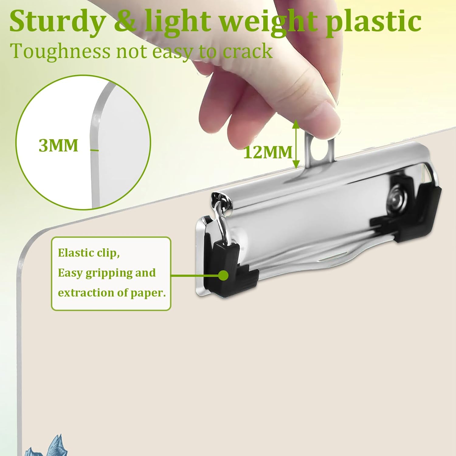 - HIGH QUALITY MATERIALS:Letter-size clipboard with high-gloss clear surface and sturdy base,provides a smooth,portable writing area.Made of high-quality plastic,designed with rounded corners edges,long-lasting,anti-fray and provide a comfortable hold.suitable for indoor or outdoor use.Not thick and bulky like cheap clipboards.