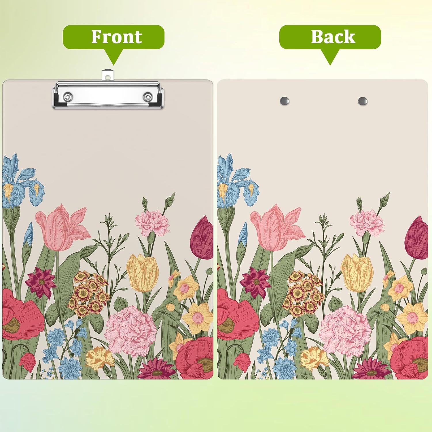 Spring Flowers Clipboard,Decorative Acrylic Clipboard with Low Profile Metal Clip for Office,School,Teachers,Students Standard Letter Size 9x12.5