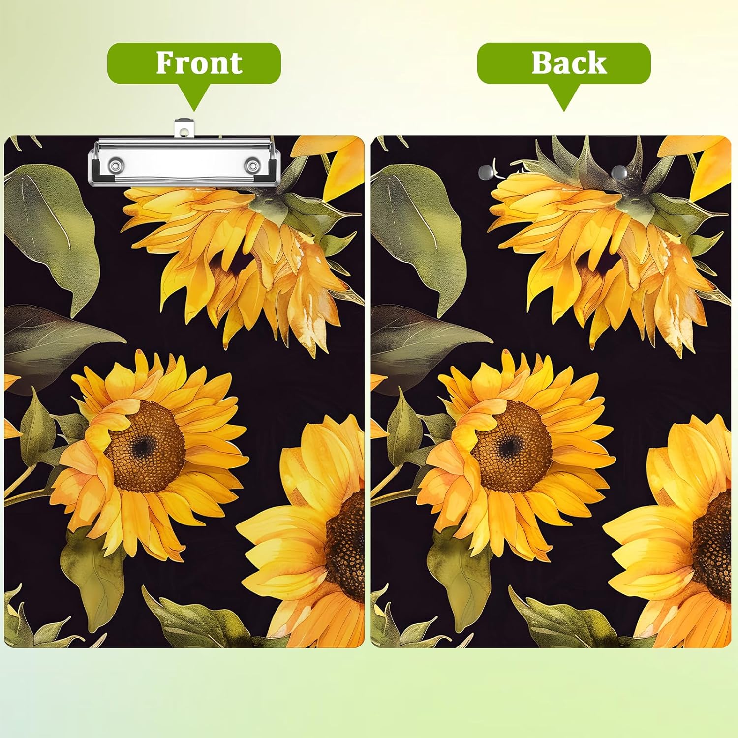 Watercolor Sunflowers Clipboard,Decorative Acrylic Clipboard with Low Profile Metal Clip for Office,School,Teachers,Students Standard Letter Size 9x12.5