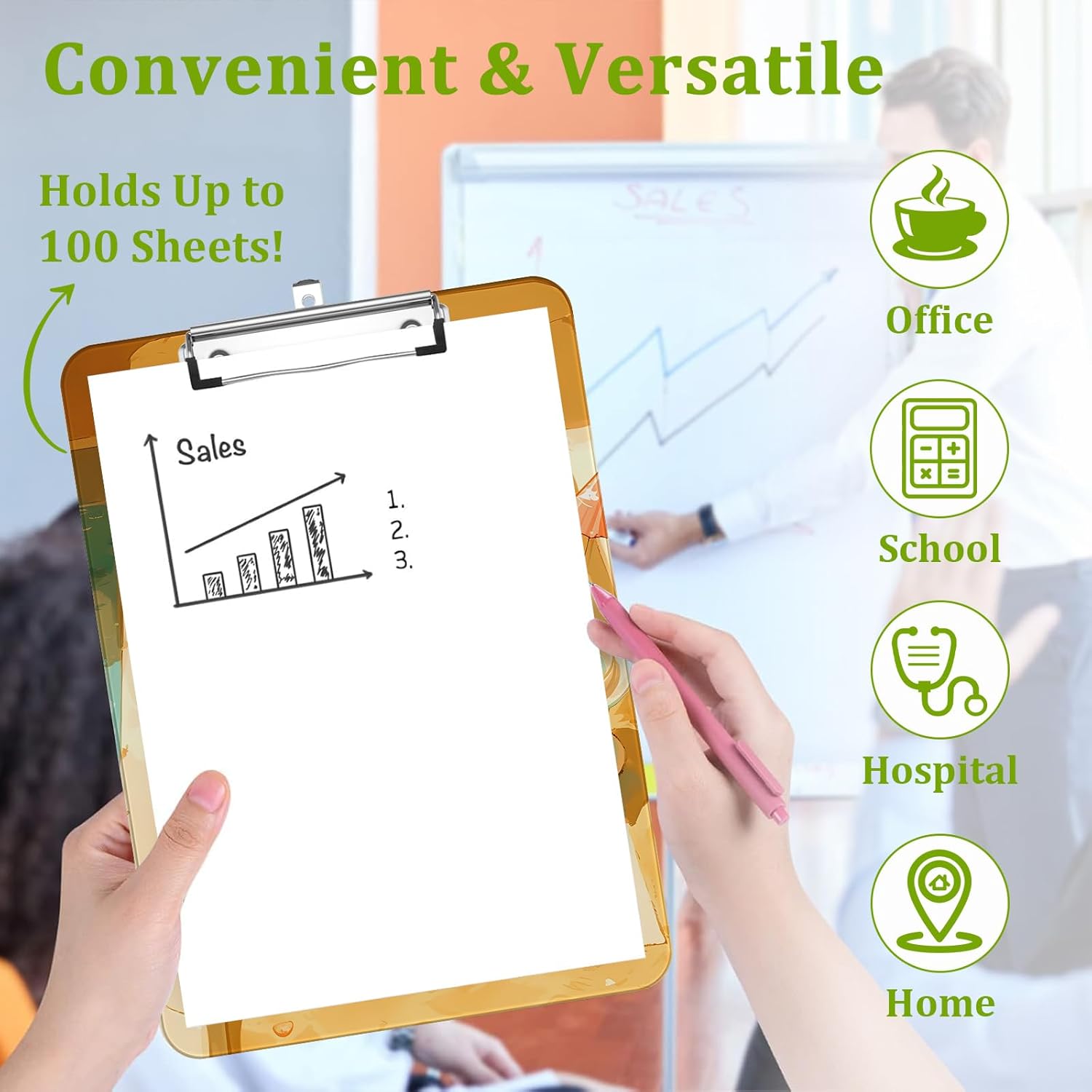 - HIGH QUALITY MATERIALS:Letter-size clipboard with high-gloss clear surface and sturdy base,provides a smooth,portable writing area.Made of high-quality plastic,designed with rounded corners edges,long-lasting,anti-fray and provide a comfortable hold.suitable for indoor or outdoor use.Not thick and bulky like cheap clipboards.