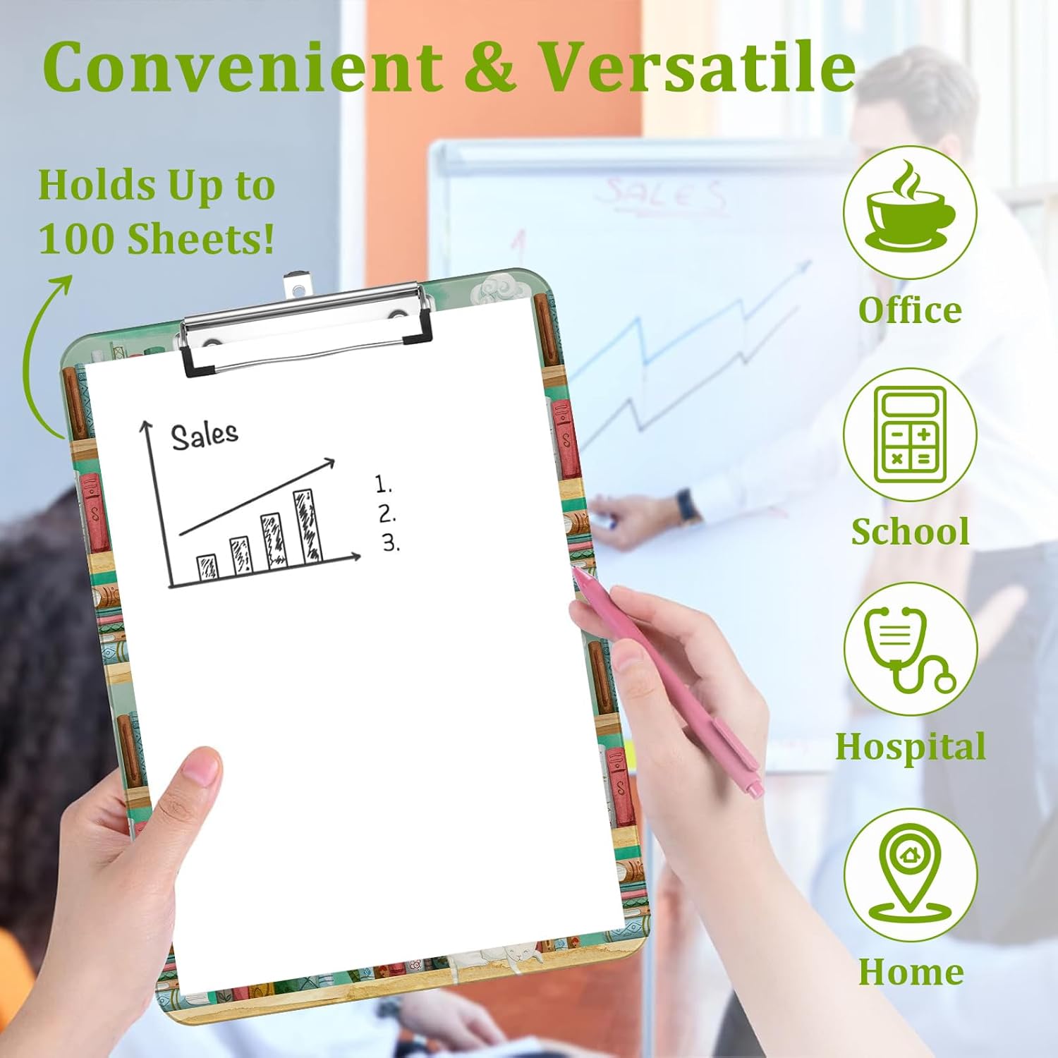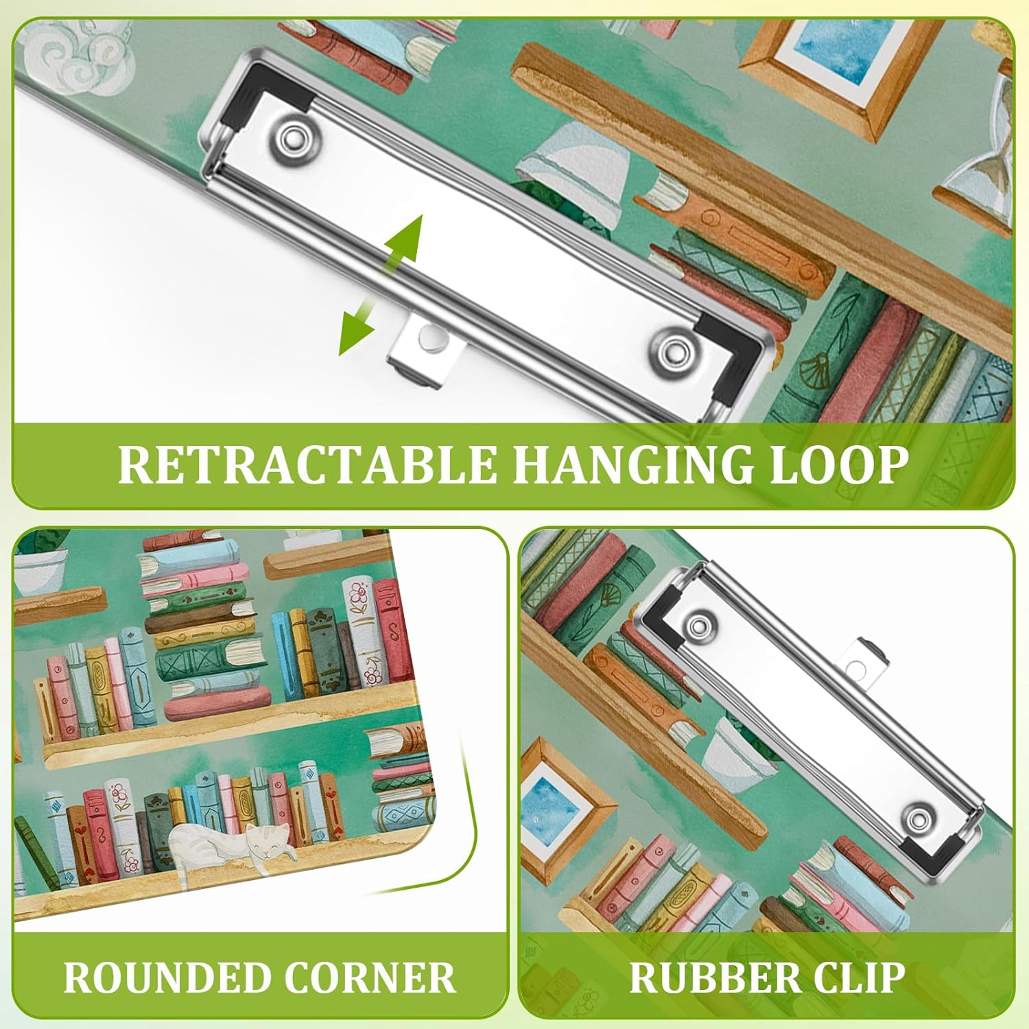 Cat Bookshelves Clipboard,Decorative Acrylic Clipboard with Low Profile Metal Clip for Office,School,Teachers,Students Standard Letter Size 9x12.5