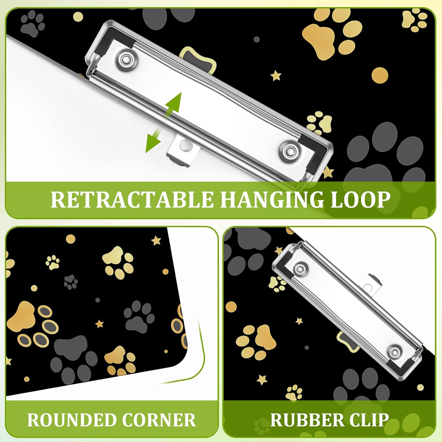 Dog Paw Clipboard,Decorative Acrylic Clipboard with Low Profile Metal Clip for Office,School,Teachers,Students Standard Letter Size 9x12.5