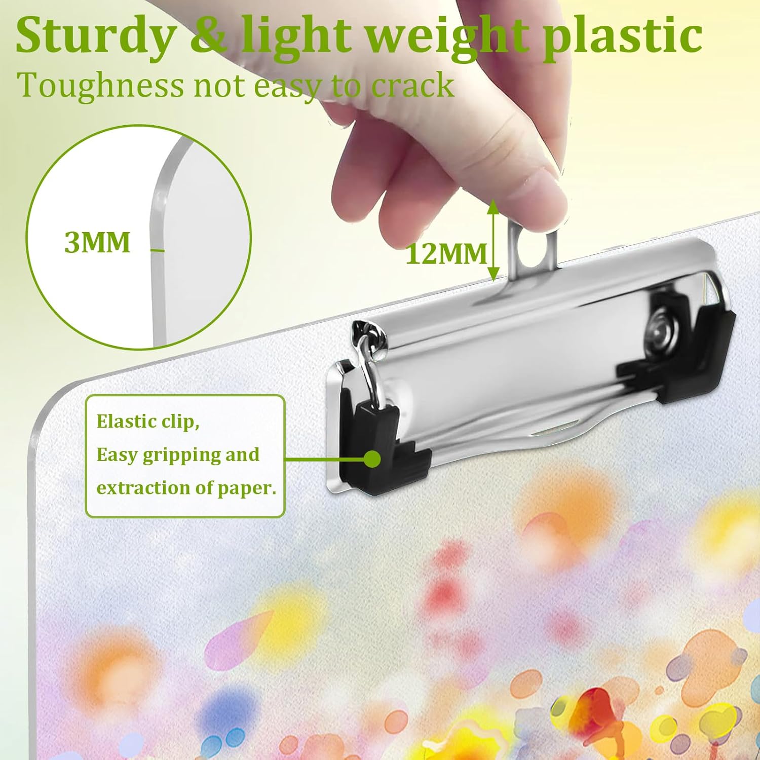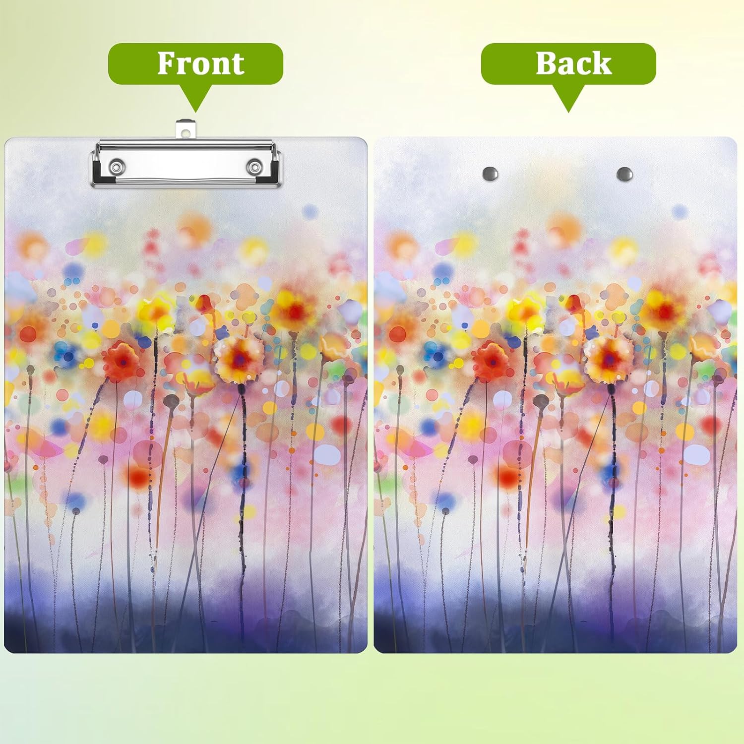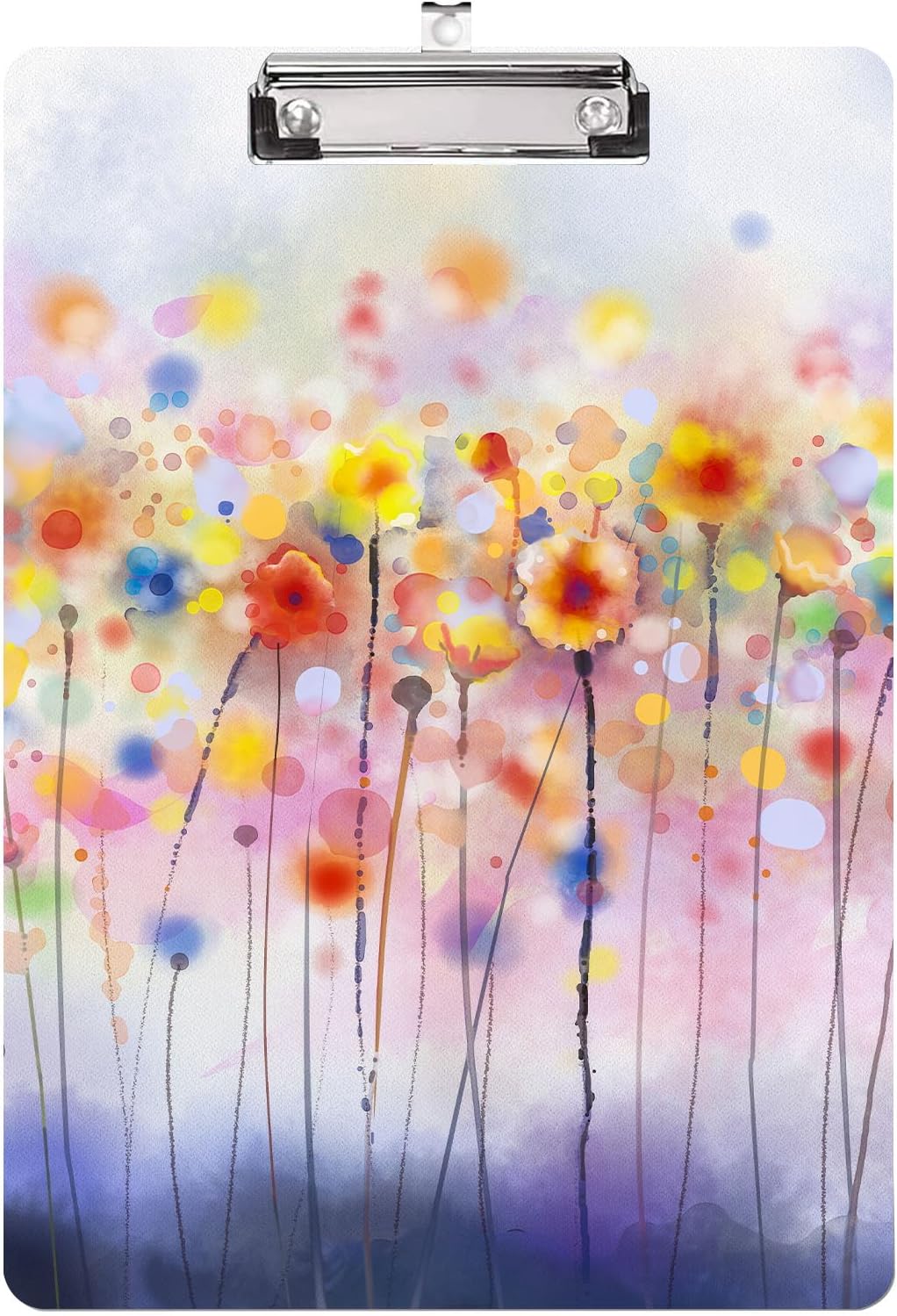 Watercolor Floral Clipboard,Decorative Acrylic Clipboard with Low Profile Metal Clip for Office,School,Teachers,Students Standard Letter Size 9x12.5