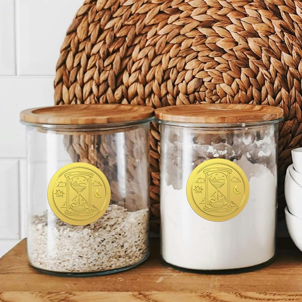 Peacoblue Gold Foil Stickers Seals Embossed Divination and Hourglass 2 Inch 100Pcs for Gift Present Card Decor, Envelop Seals, Invitation, Self Adhesive Gold Around Embossing Stickers
