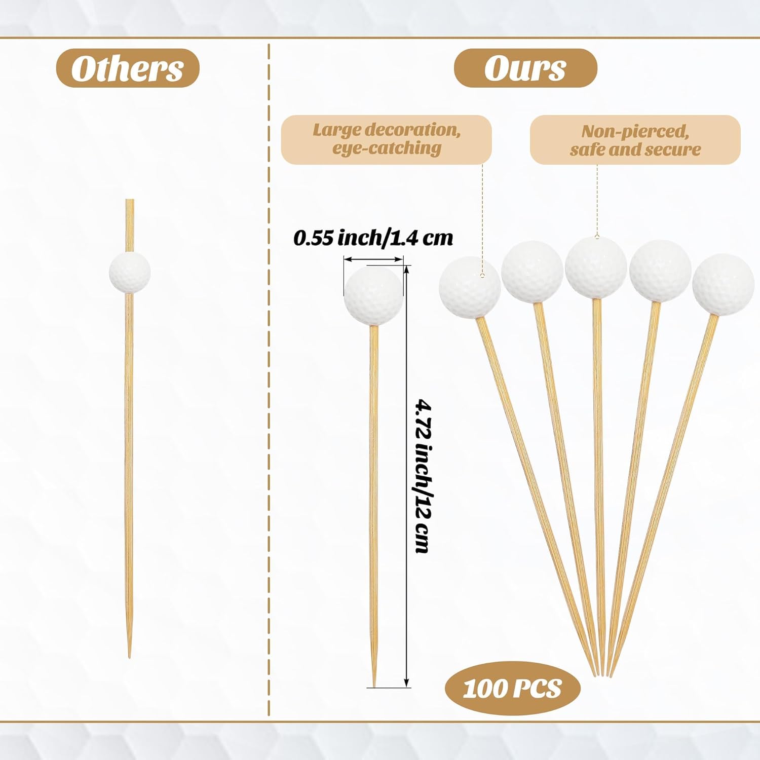 - Cute design: you will receive 100 pieces of golf toothpicks, which are sufficient for your daily needs; our golf skewers are composed of white golf ball decorations and wooden toothpicks, adding a special touch to your golf-themed party, suitable for cocktails, appetizers, and desserts
