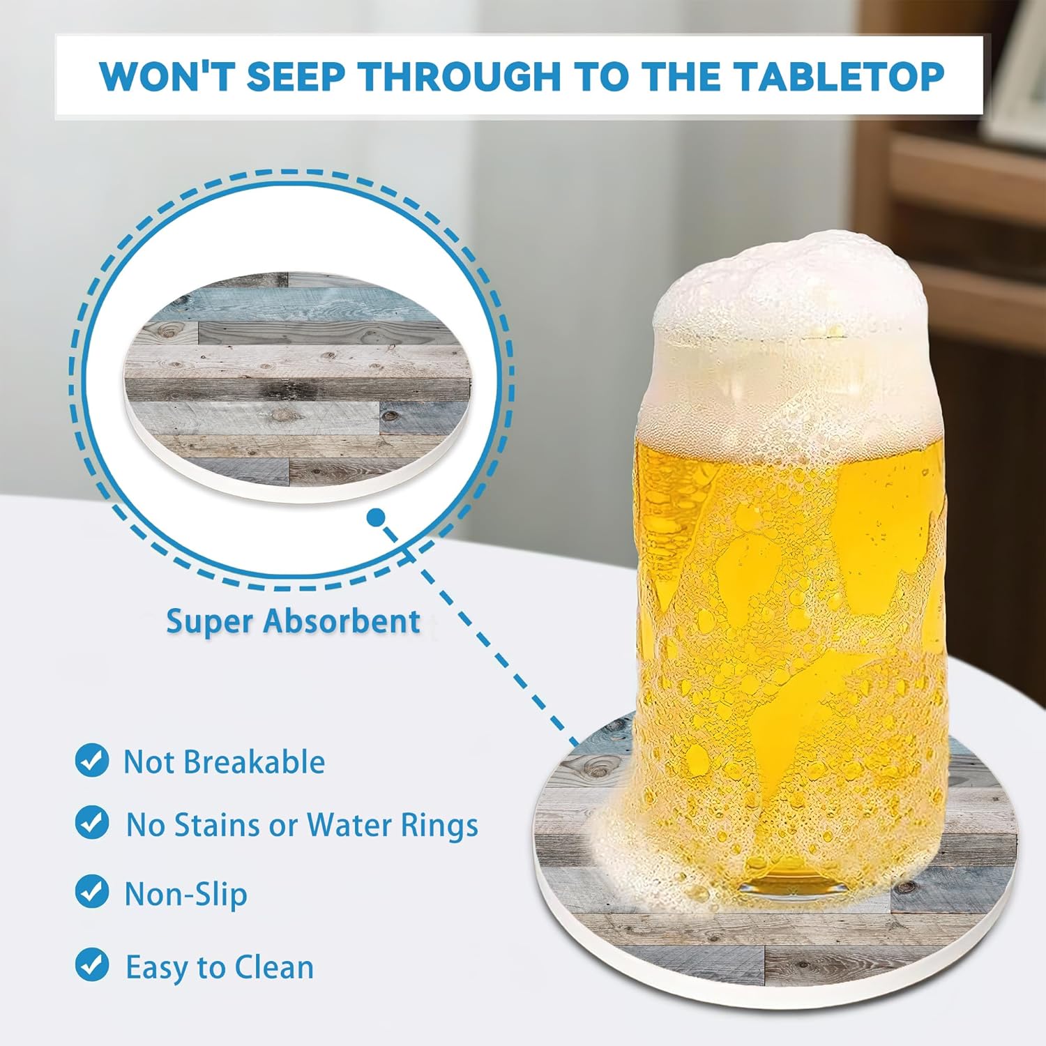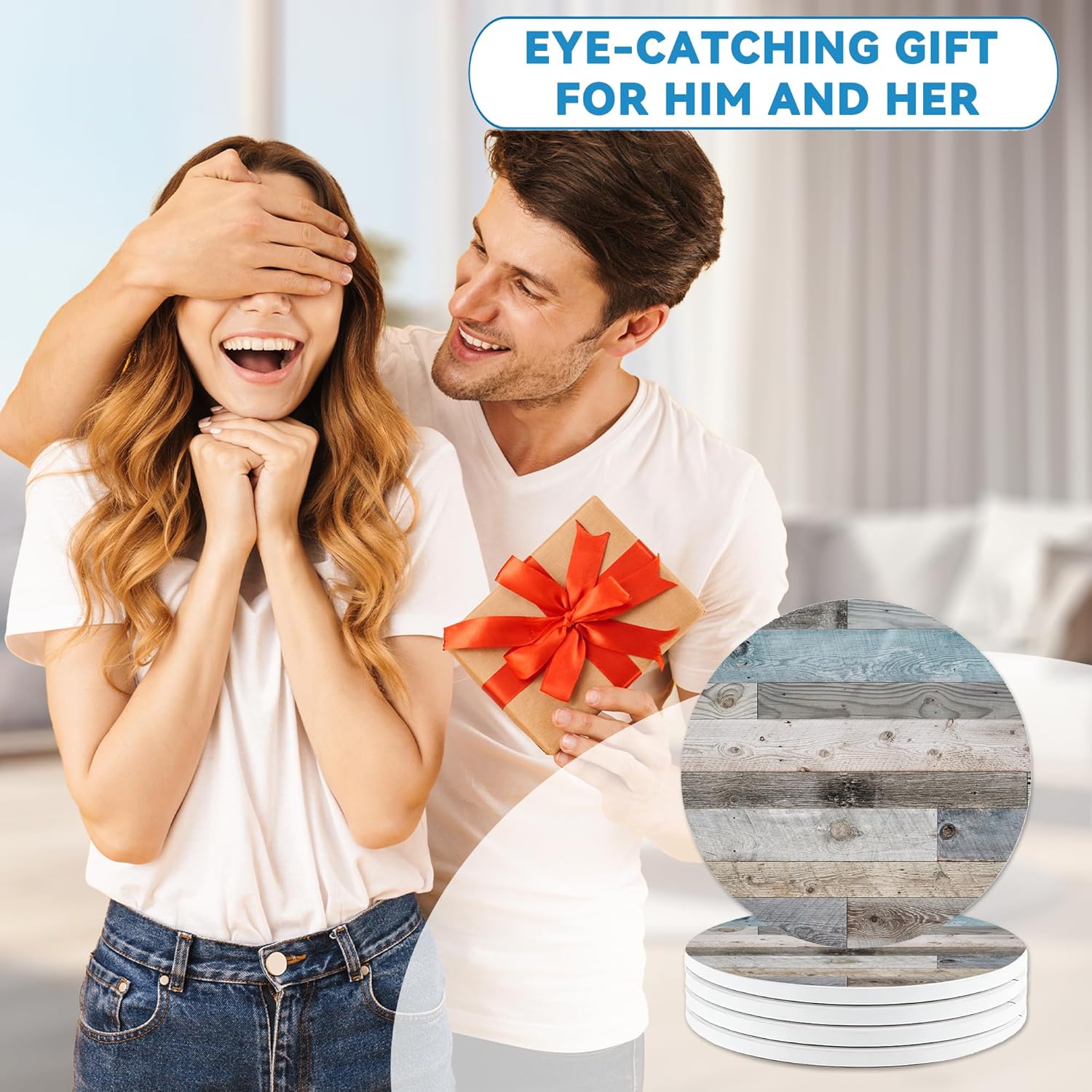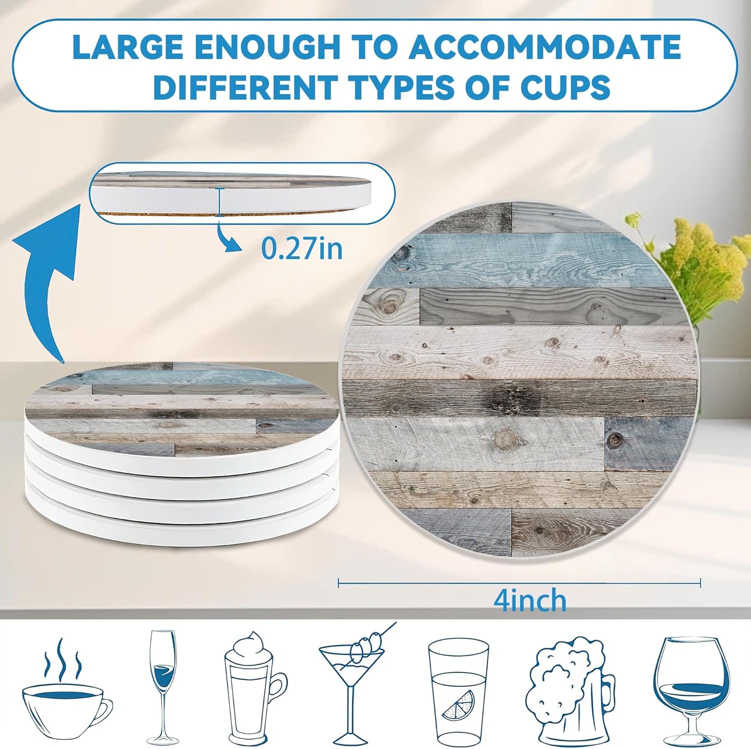Drinks Coasters Set of 4, Woodboard Round 4" Cup Coasters, Absorbent Ceramic Stone Coasters with Cork Base, Cute Coasters for Table Home Décor, Ideal Gifts for Women Men