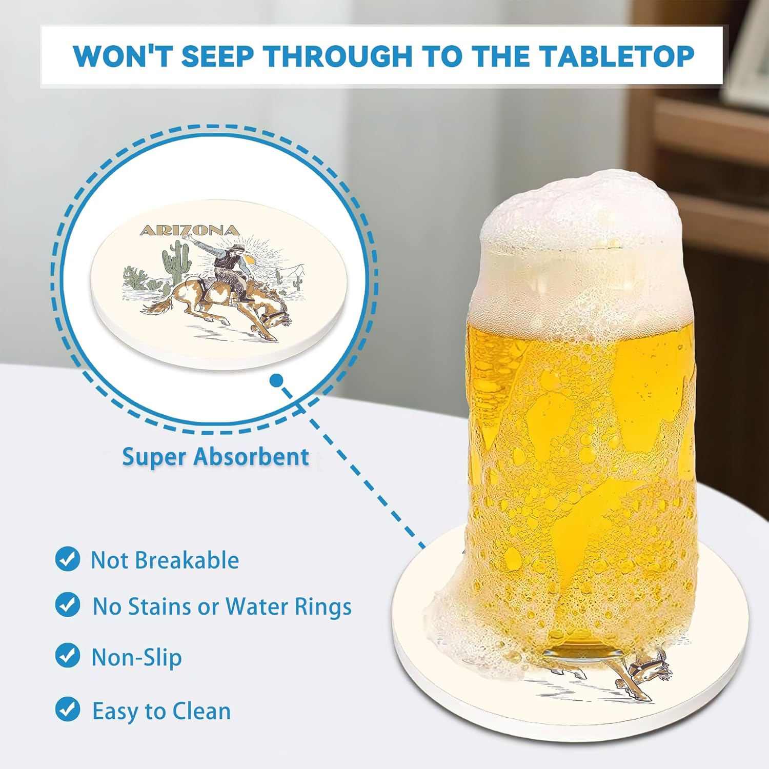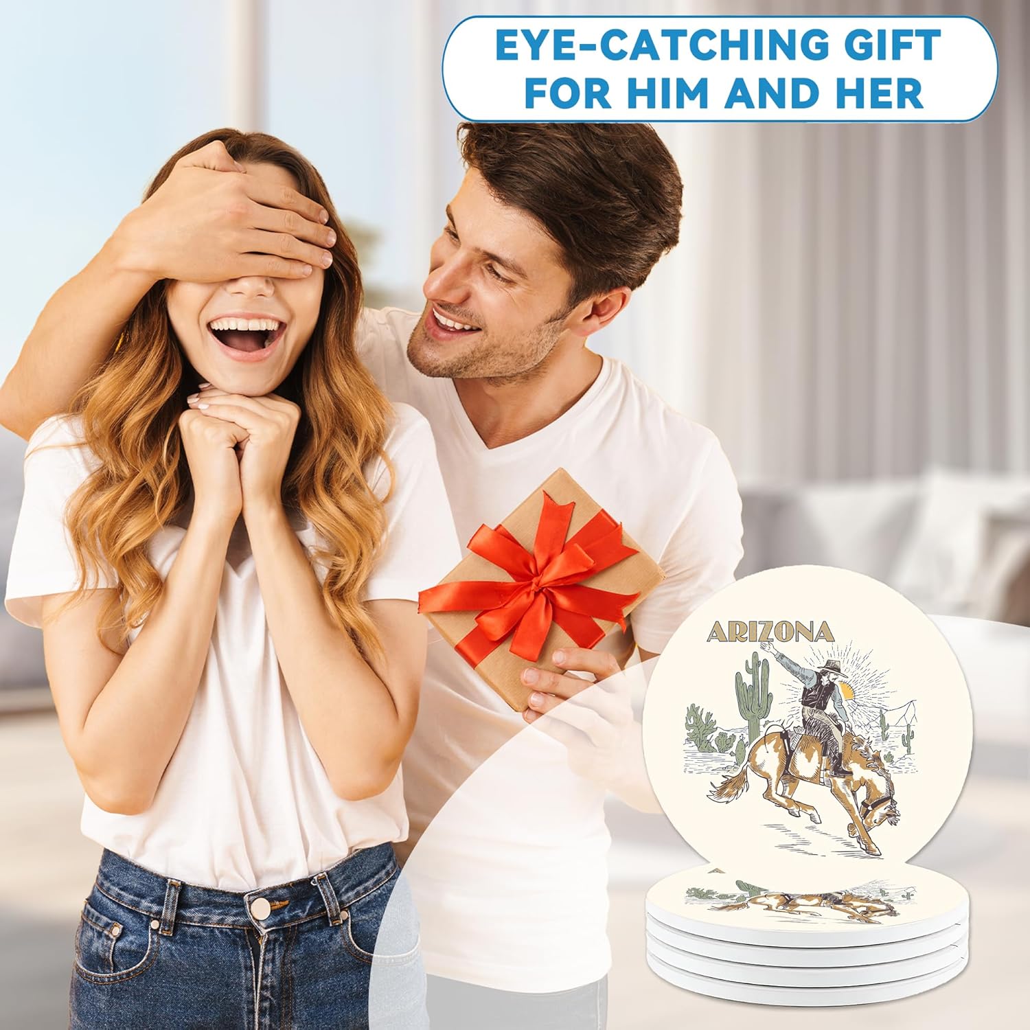 Western Coasters Set of 4, Arizona Cow Boy Coaster with Cork Baking, Absorbent Ceramic Stone Coaster for Table Home Décor, Ideal Gifts for Women Men