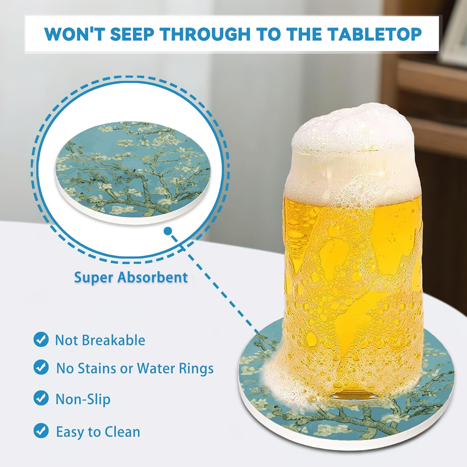 - Classic Decor: The coaster set features a classic round shape with a matte edge design, serving as a cute decoration for living rooms, kitchens, bedrooms, apartments, and more.