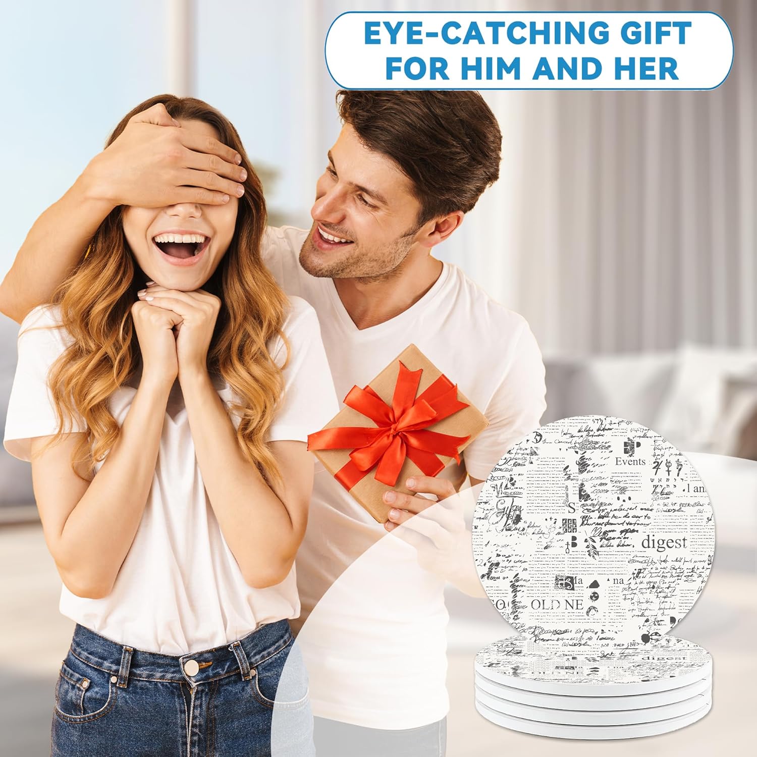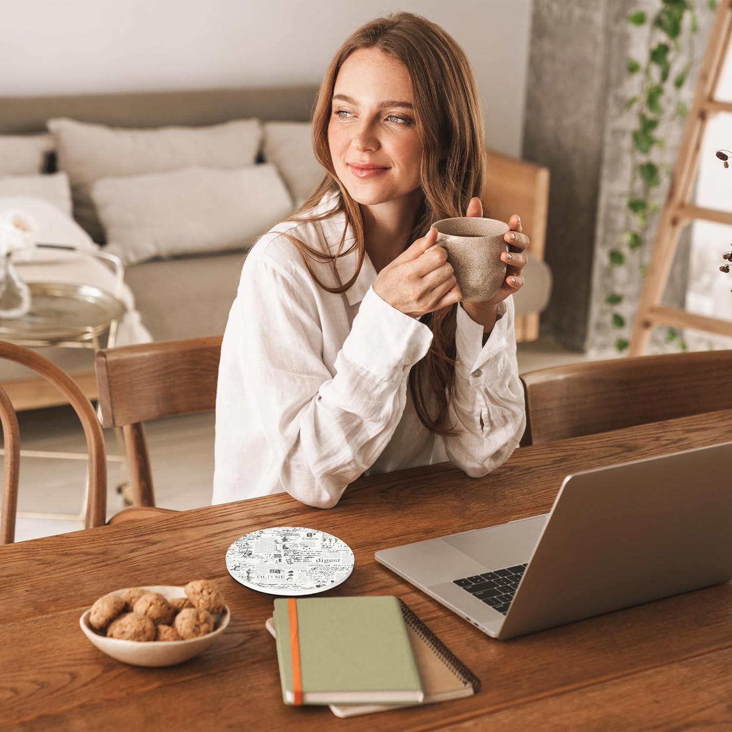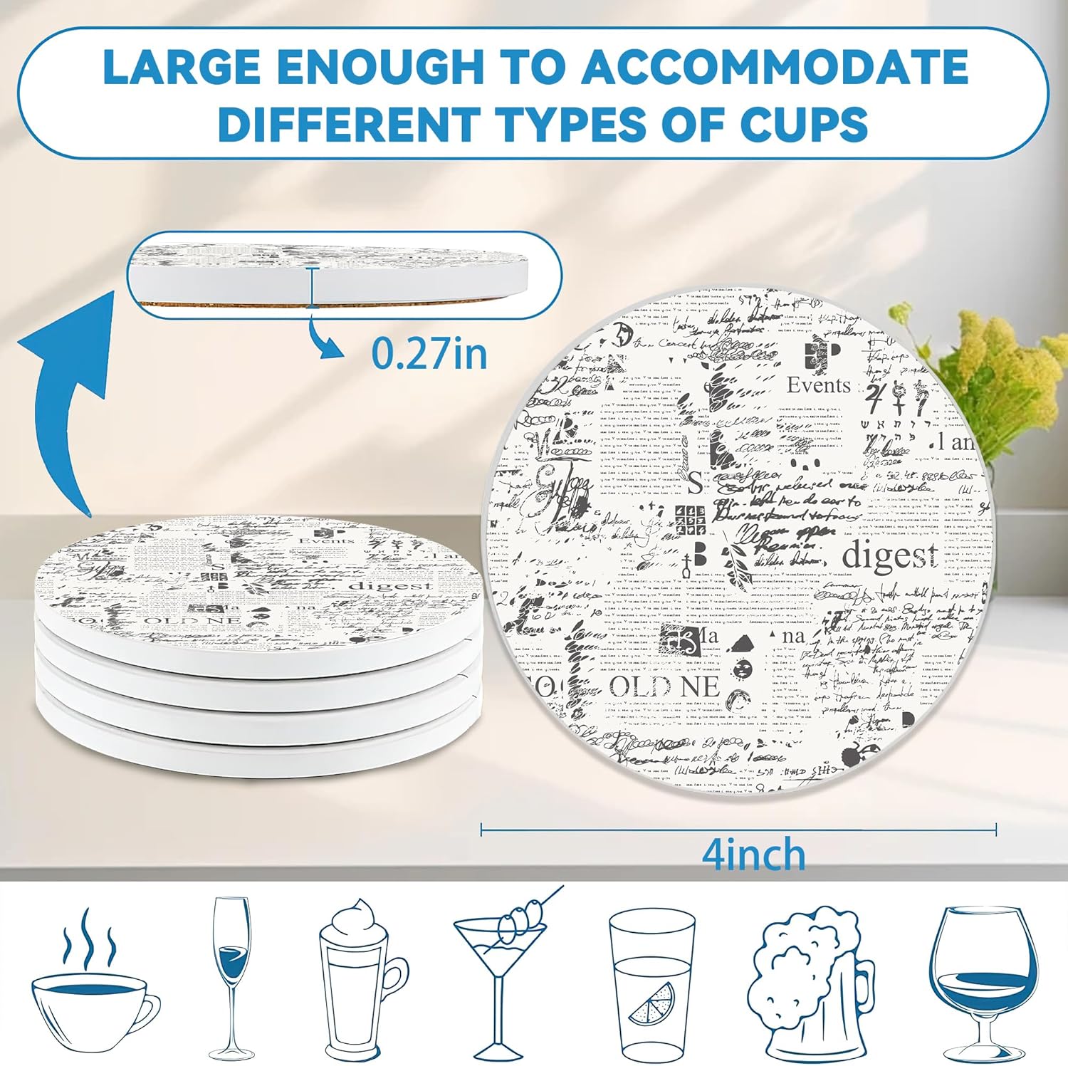 Drinks Coasters Set of 4, Vintage Old Book Page Round 4" Cup Coasters, Absorbent Ceramic Stone Coasters with Cork Base, Cute Coasters for Table Home Décor, Ideal Gifts for Women Men