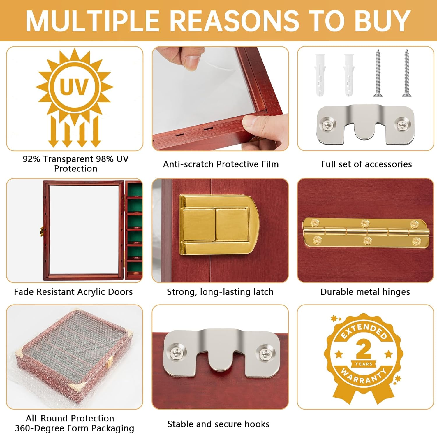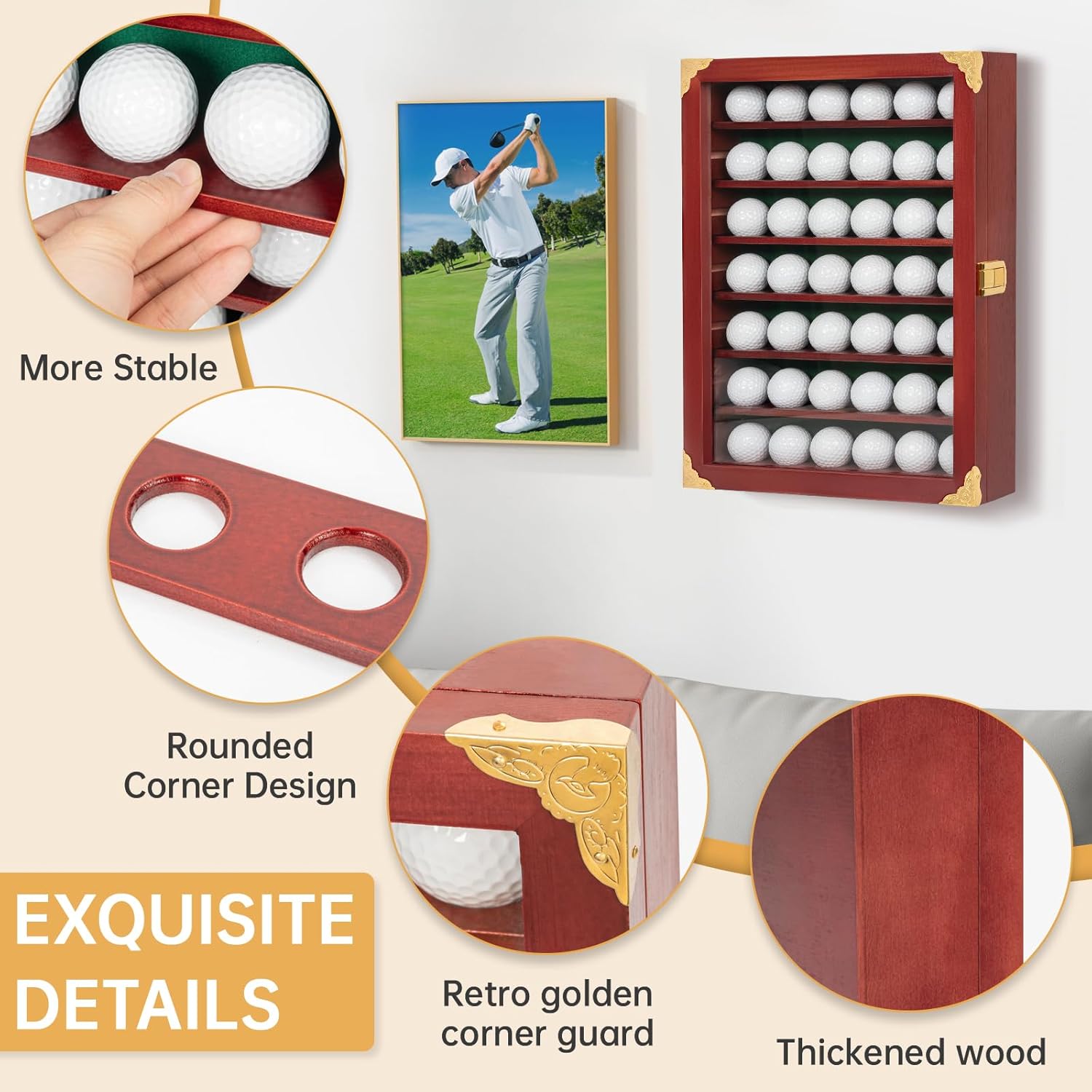 Golf Ball Display Case, Solid Wood Golf Ball Holder, Wall Mounted Golf Ball Rack with Acrylic Door for Golf Enthusiasts (Mahogany, for 42 Golf Balls)