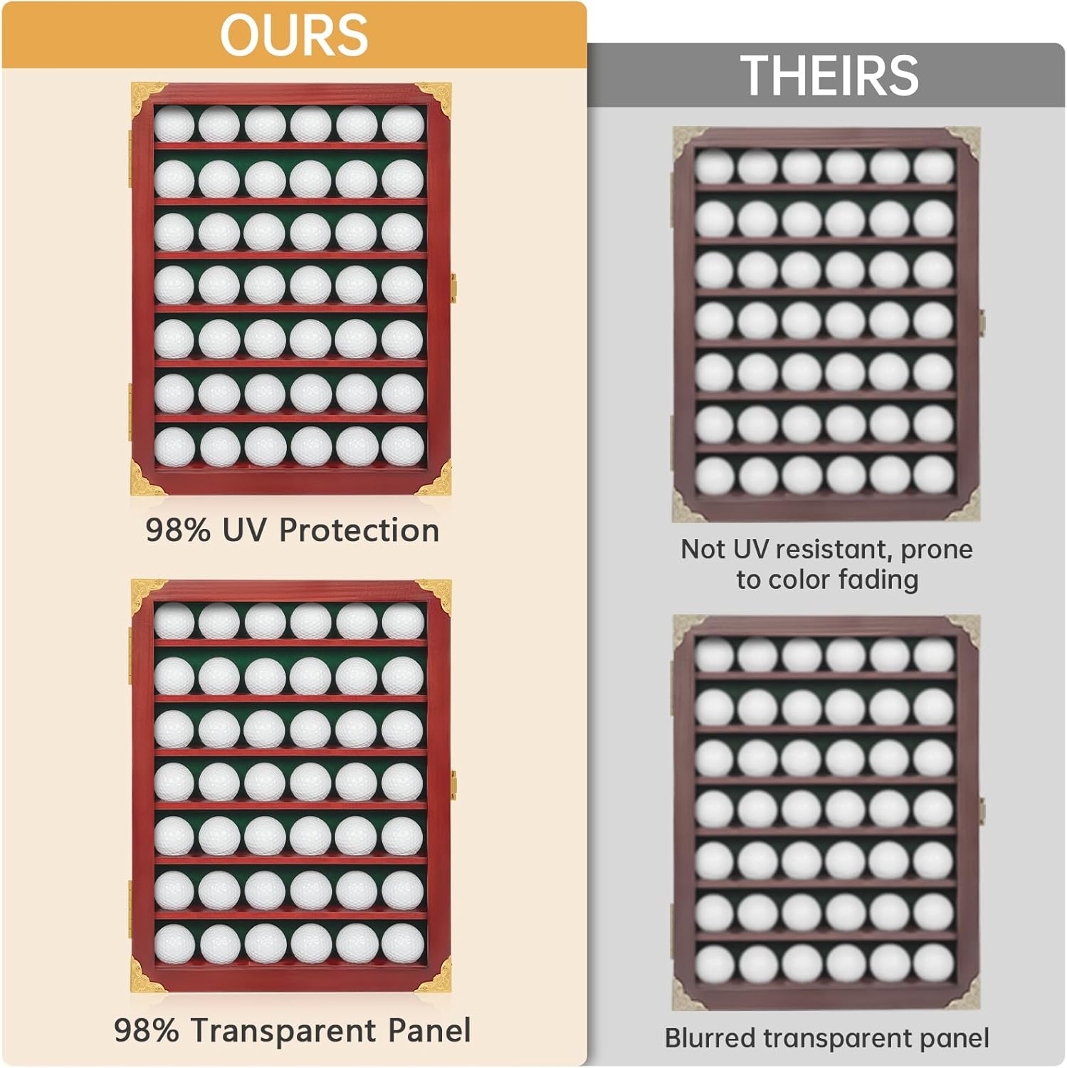- 【Golf Ball Display Case】WELIDAY golf ball display case has 7 rows of shelves, each row of shelves can display 6 balls, and a total of 42 balls can be displayed. Let WELIDAY Golf Display Case record your souvenirs and trophy balls from games and courses