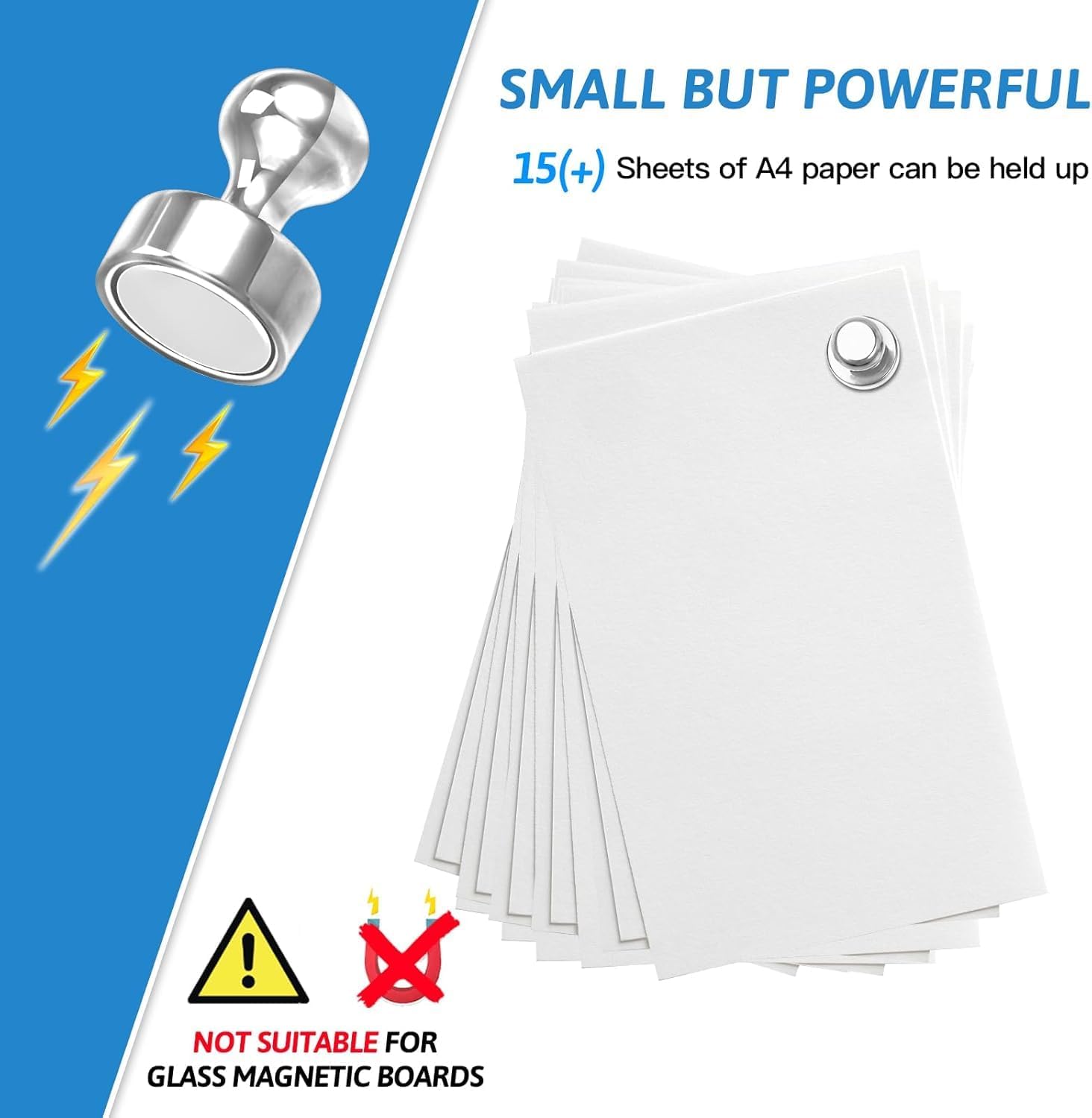 - 【Strong Fridge Magnet】Not suitable for glass magnetic boards!Do not be fooled by these cute dry erase board magnets, It can hold up to 15 sheets of A4 printer paper at once with just a tiny magnet. Even possible to use them in the kitchen to hold cooking tools that weigh no more than 6.5 OZ and the cooking tools won't easily fall off.