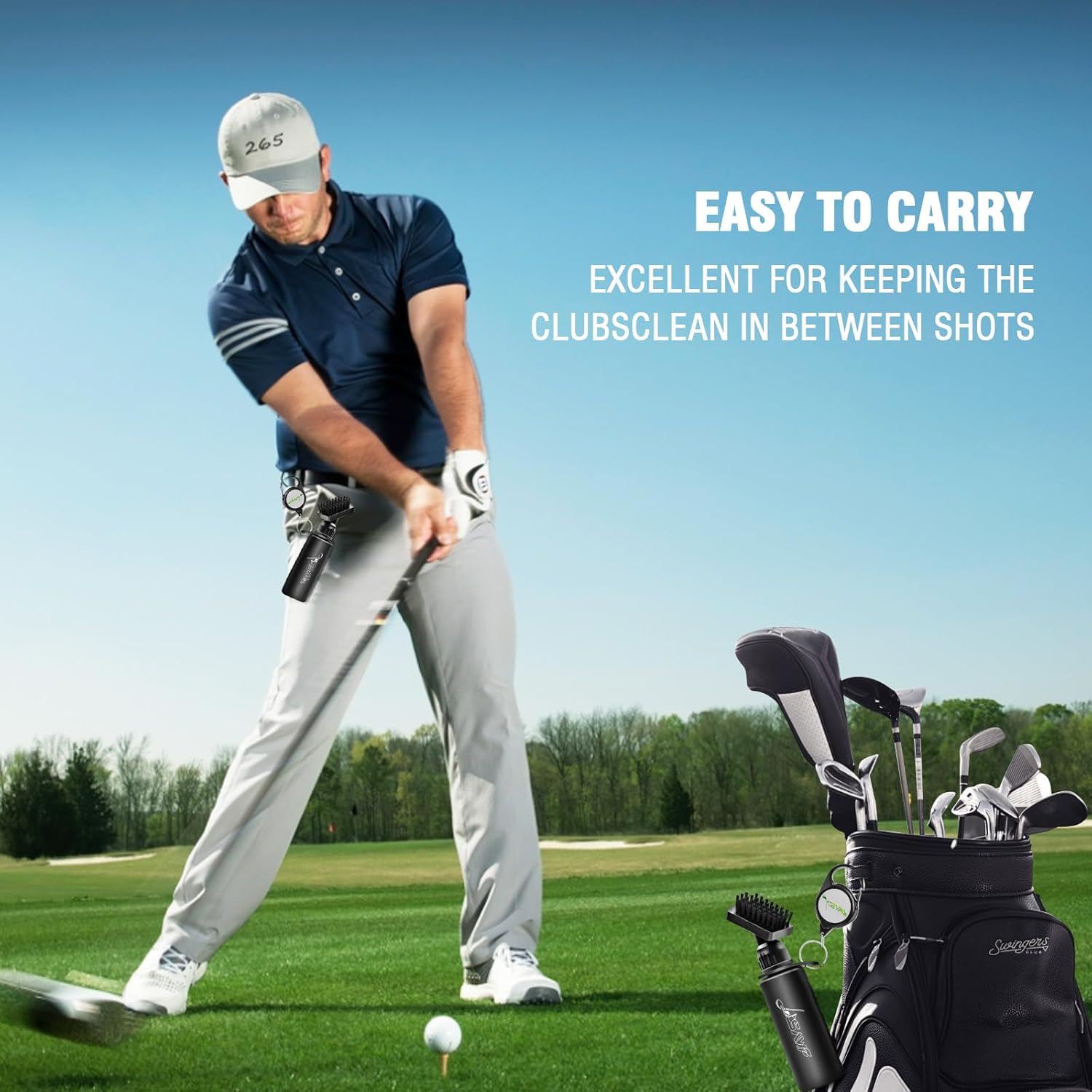 - 【EFFICIENT CLUBHEAD CLEANING】: The 4-ounce water bottle provides ample cleaning water for thorough, worry-free cleaning without constant refills. This golf club cleaner brush saves time, so you can focus on hitting the ball instead of cleaning.