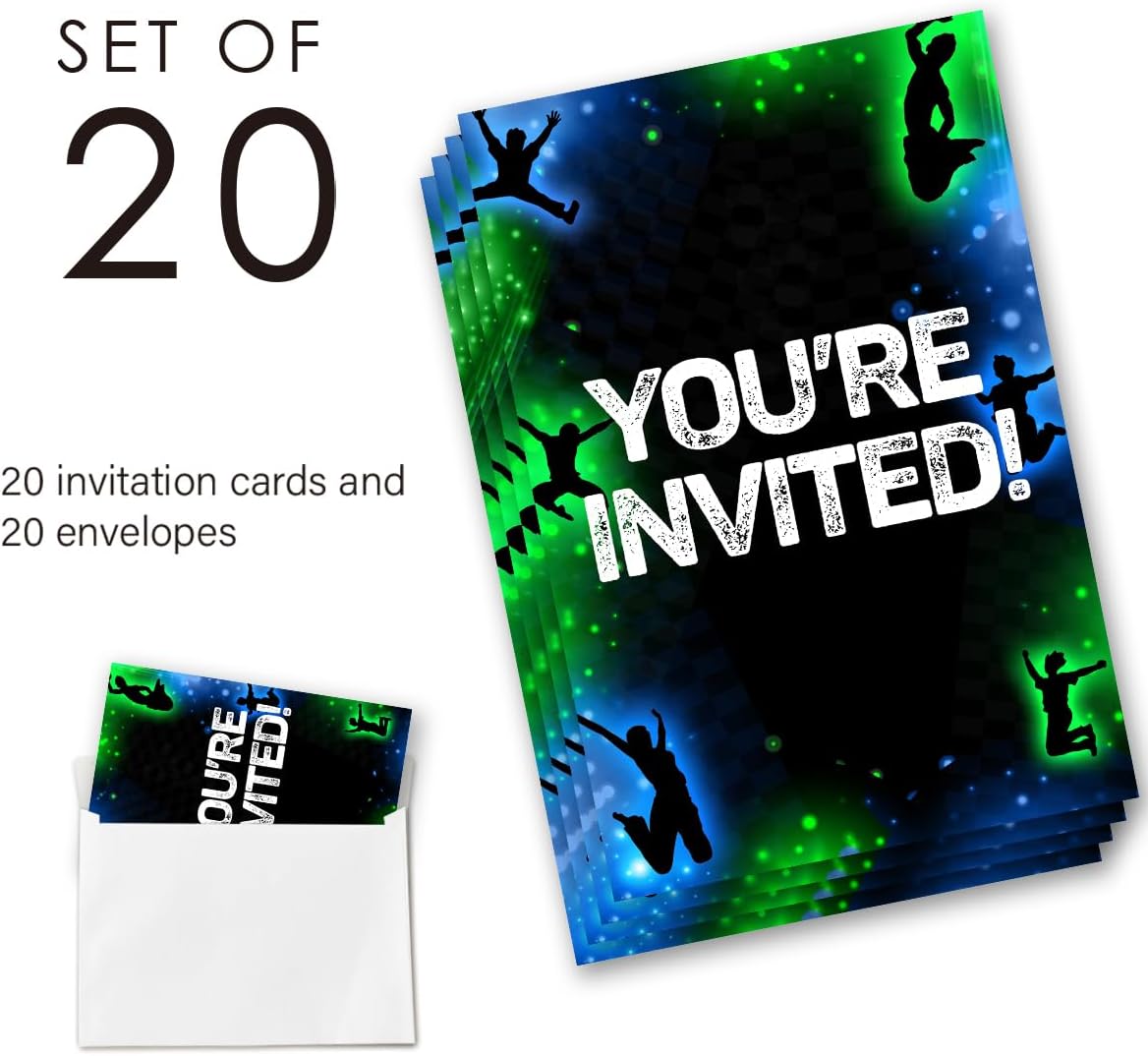 Jump Birthday Invitation Supplies with Envelopes Set of 20 Bruh Birthday Party Invitation Fill in Blank, Double Sided