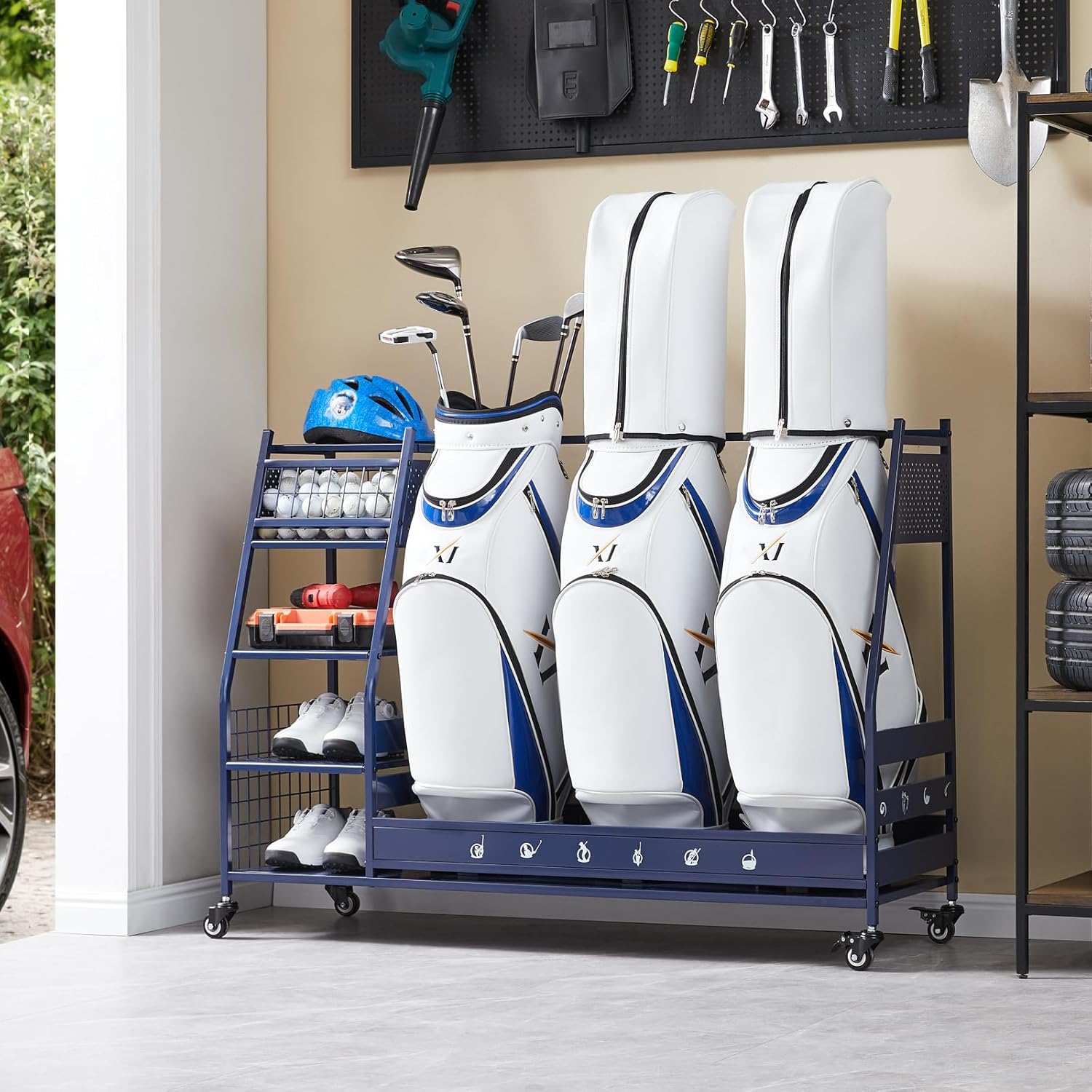 - Multi Occasions: Our golf bag storage can organize almost all your golf accessories, keep your sports and golf equipment in one place, say goodbye to cluttered garages, basements, homes, yoga studios, golf clubs, athletic departments, and storage rooms that are easy to access and space-saving. Valentine's Day is coming up, this superior quality uniquely designed golf ball rack is the ideal Valentine's gift for your boyfriend or husband