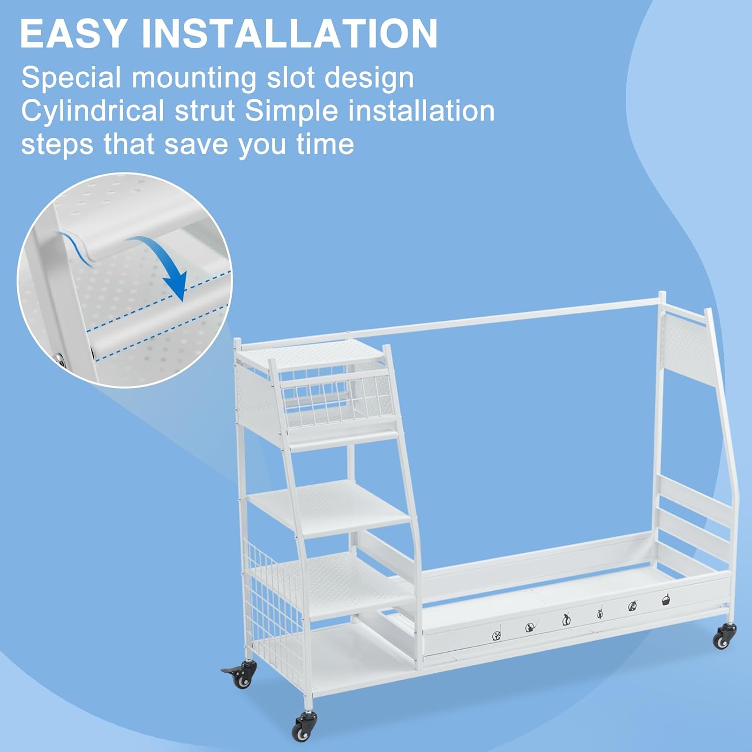 - Easy Installation: We have simplified the parts and installation steps of the golf garage storage stand, and comes with detailed installation instructions (in the package) and an installation video (on the listing details page), which makes it possible for even a novice to assemble it in less than 25 minutes. In addition, if you have any problems after opening the package or during the installation, you can tell us anytime, we will be happy to help you solve the problem