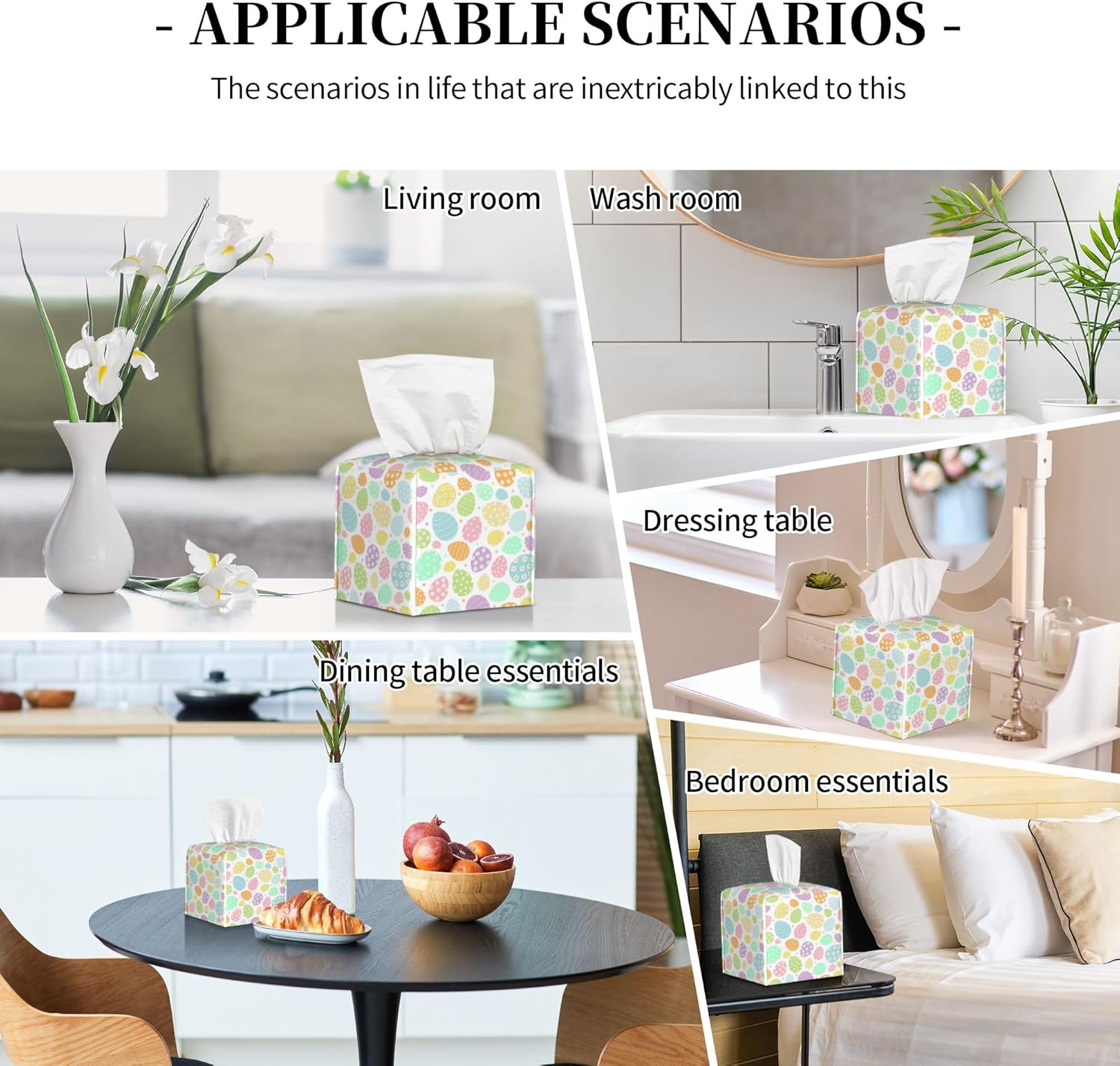 Tissue Box Cover Holder, Colored Easter Eggs PU Leather Square Tissue Box Cover Decorative Organizer for Bathroom Kitchen Bedroom Vanity Countertop Night Stands