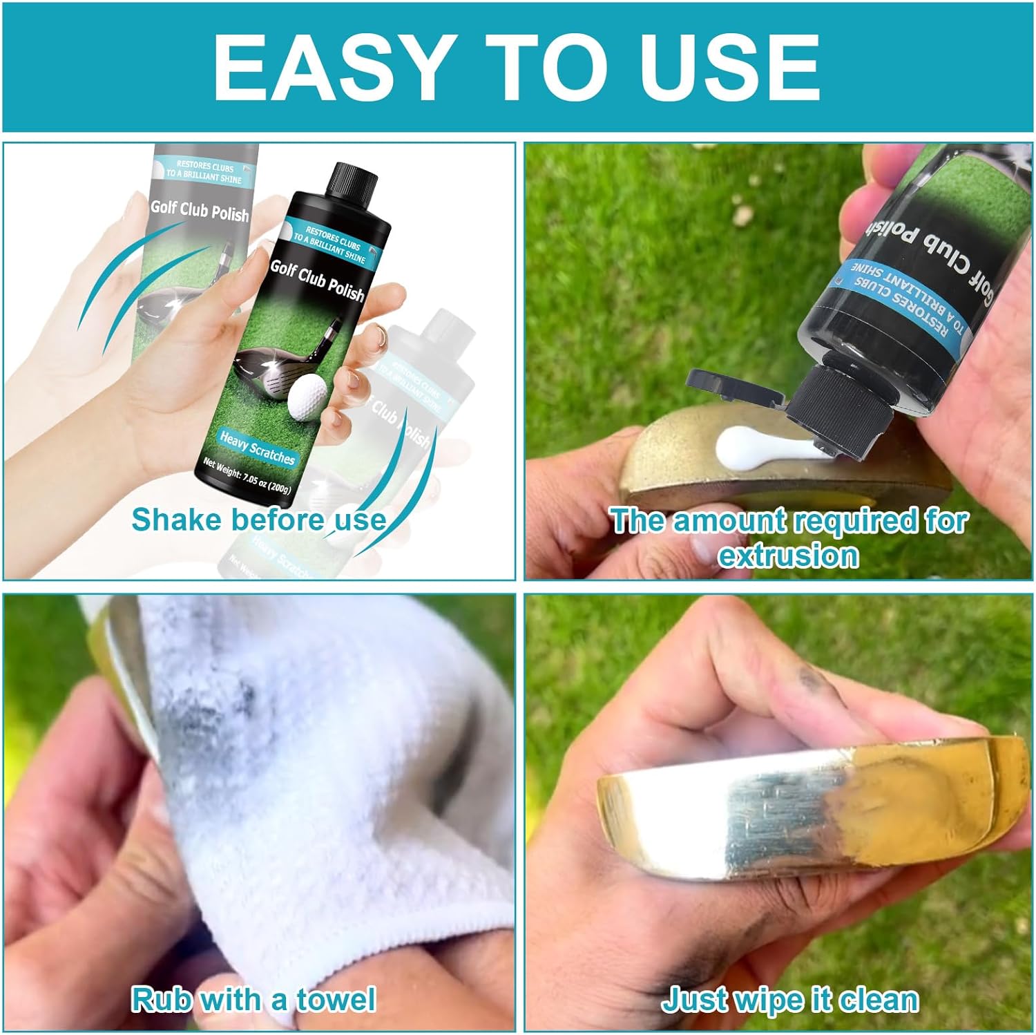 - Golf Club Polish: Achieve a brilliant shine with our advanced golf club cleaner. Removes scuffs, rust, and other stains that detract from the look and performance of your club