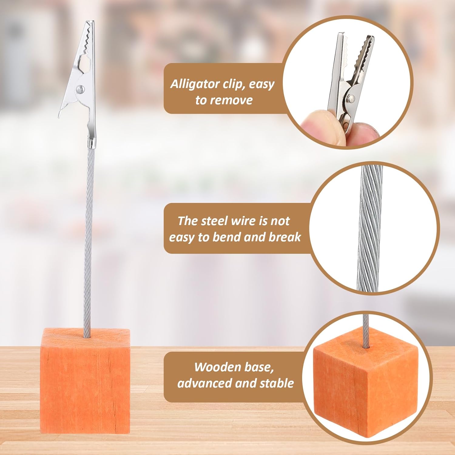 - Anti wear and stable: our cube base place card holders are made of quality wood block with metal clips, both are quality material and can last for a long lifespan, sturdy and not easy to break or crack