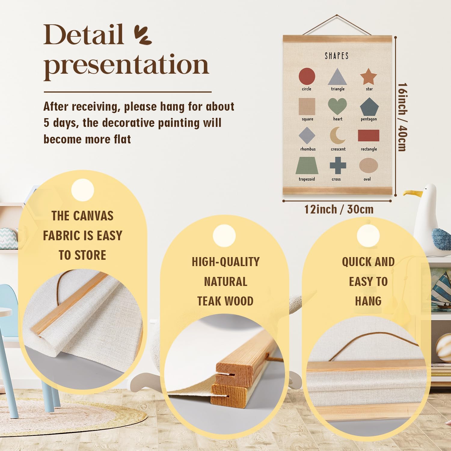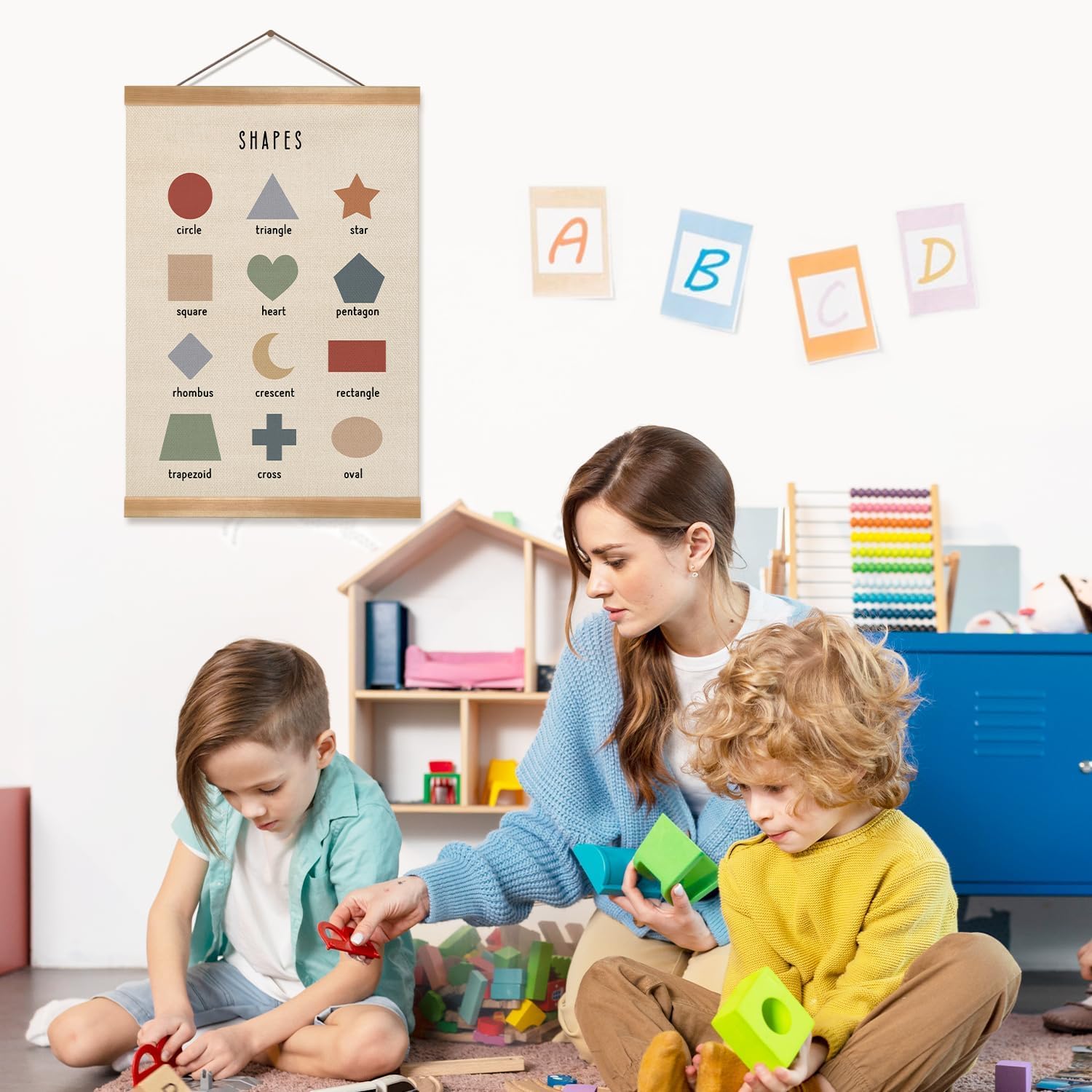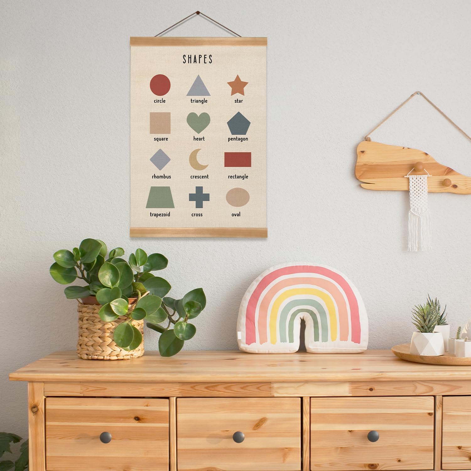 ZTGDA Shapes Educational Wall Art, Toddler Learning Posters, Shapes Learning Poster Hanger Frame Wall Decor for Classroom Nursery Kids Room Playroom Preschool Decor (12x16inch)
