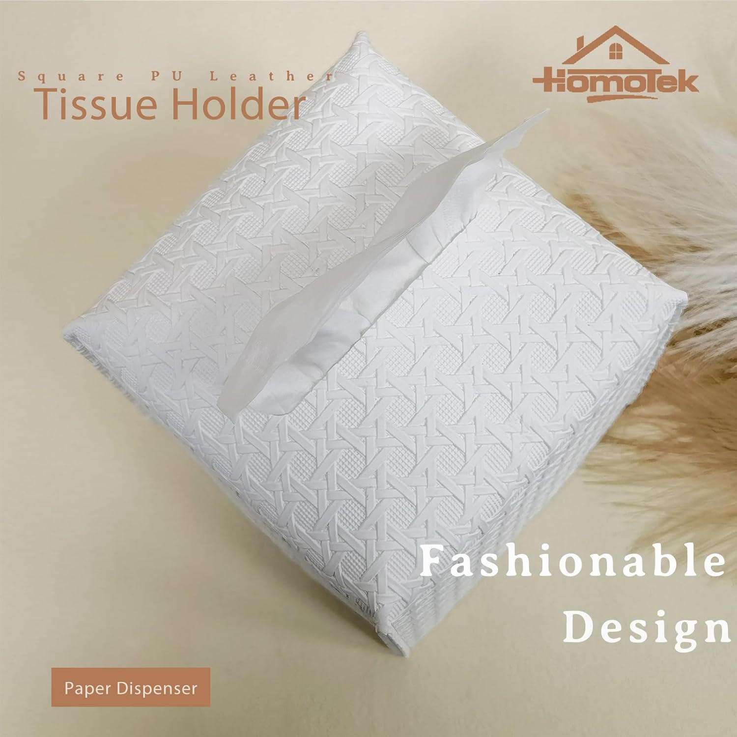- Elegant Design:Elevate your decor with this stylish square tissue box cover; crafted from premium PU leather with chic textures like Litchi Grain and Woven Waffle; a perfect blend of sophistication and practicality