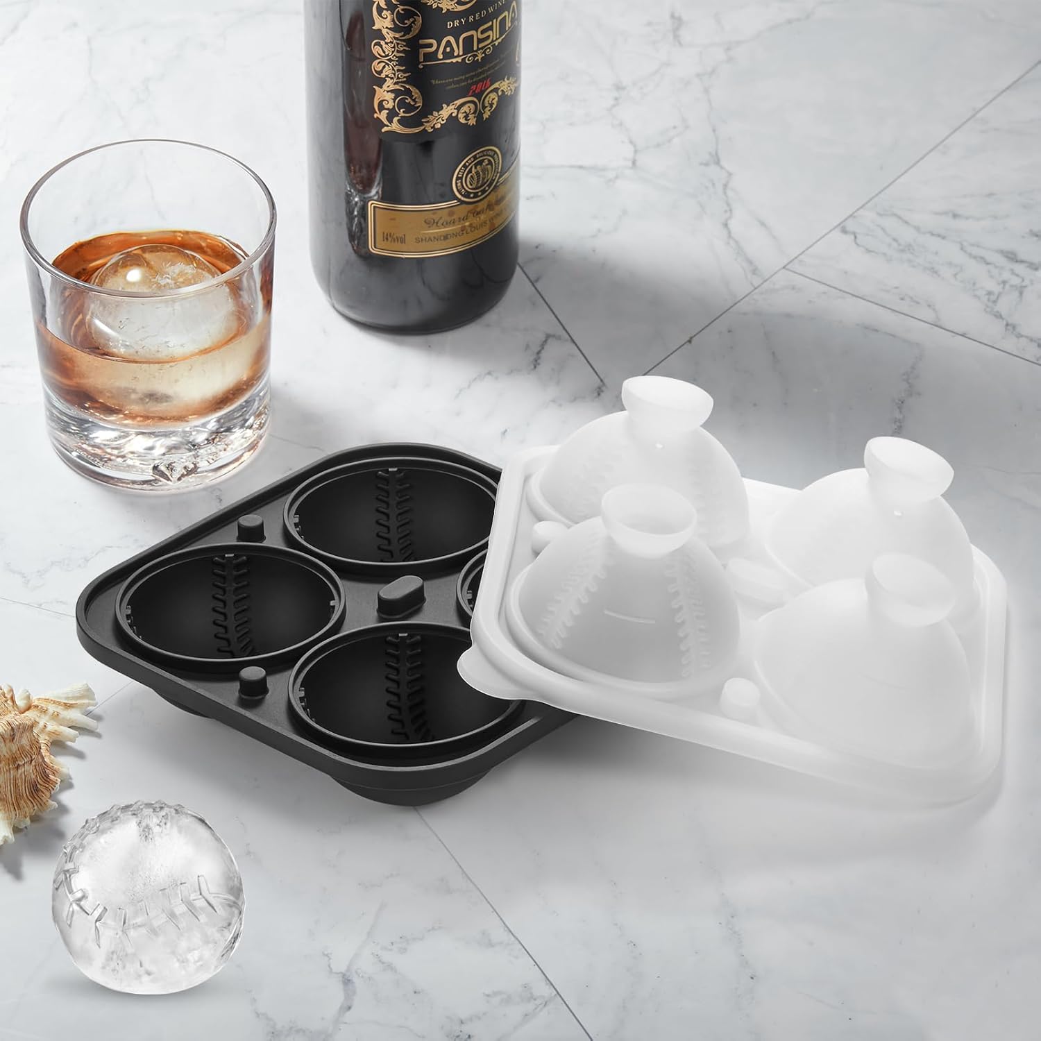 - 2.2" Large Baseball Ice Cube Mold - ACOOKEE baseball ice molds create FOUR 2.2 inch sphere ball ices rocks with detailed baseball pattern at one time.