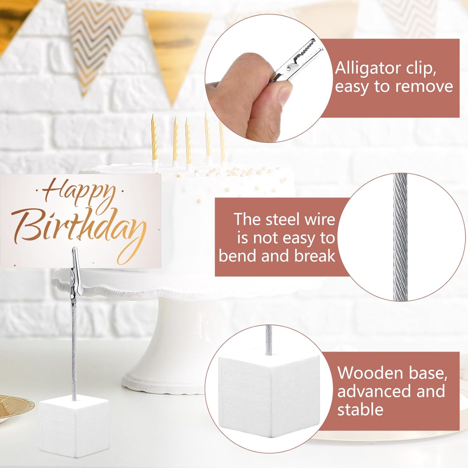 - Anti-wear and stable: our cube base place card holders are made of quality wood block with metal clips, both are quality material and can last for a long lifespan, sturdy and not easy to break or crack