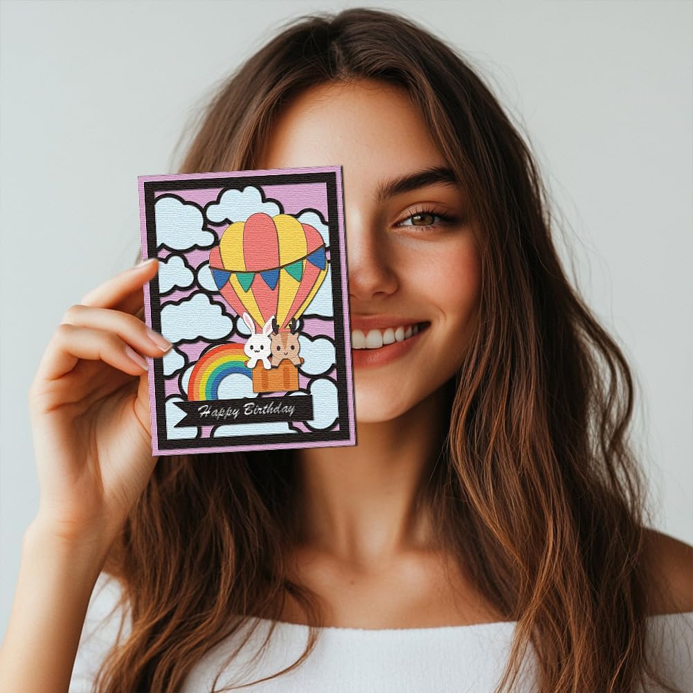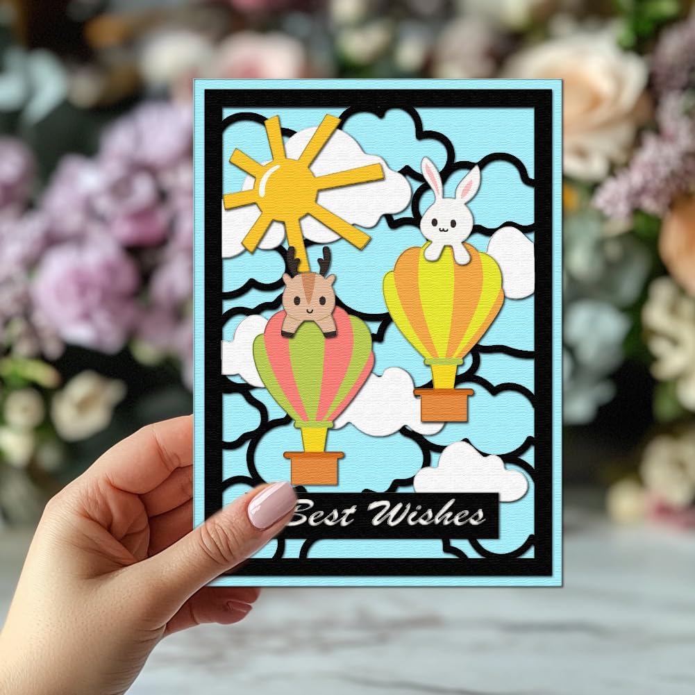 - Cloud Background Design: This kind of cutting mold features a unique cloud background frame and is also designed with cartoon sun, rainbow, hot air balloons and lovely rabbits and deer. You can use it to make a greeting card full of fairy tale feeling and give it on birthdays, Christmas, New Year, etc