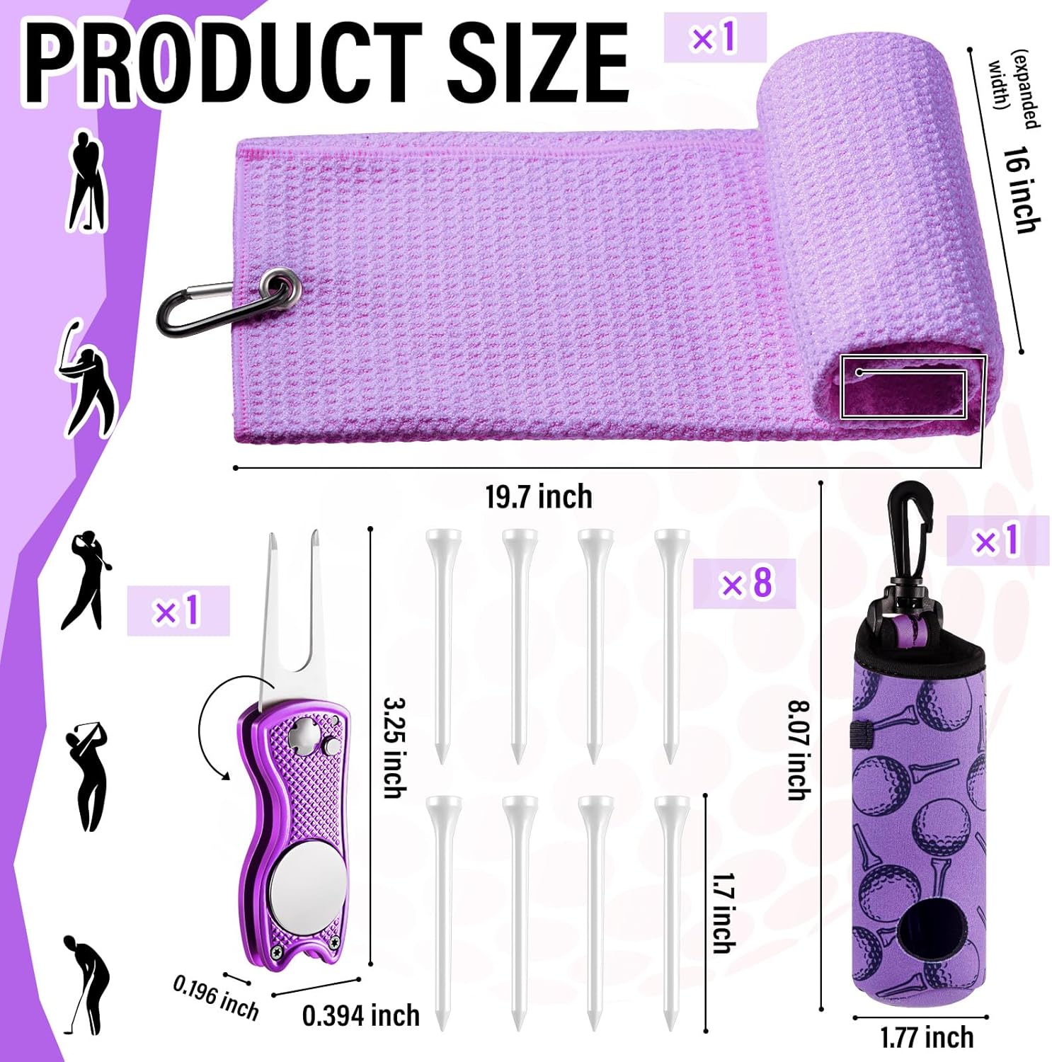 - Nice Combination: you will receive a complete set of elegant purple golf accessories, including purple golf ball bag, purple golf towel, 8 golf tees, 1 cleaning brush with a retractable zip line, 1 heavy duty divot tool, enough to meet your needs; We also offer a variety of other colors so you can choose your favorite or favorite team's support colors
