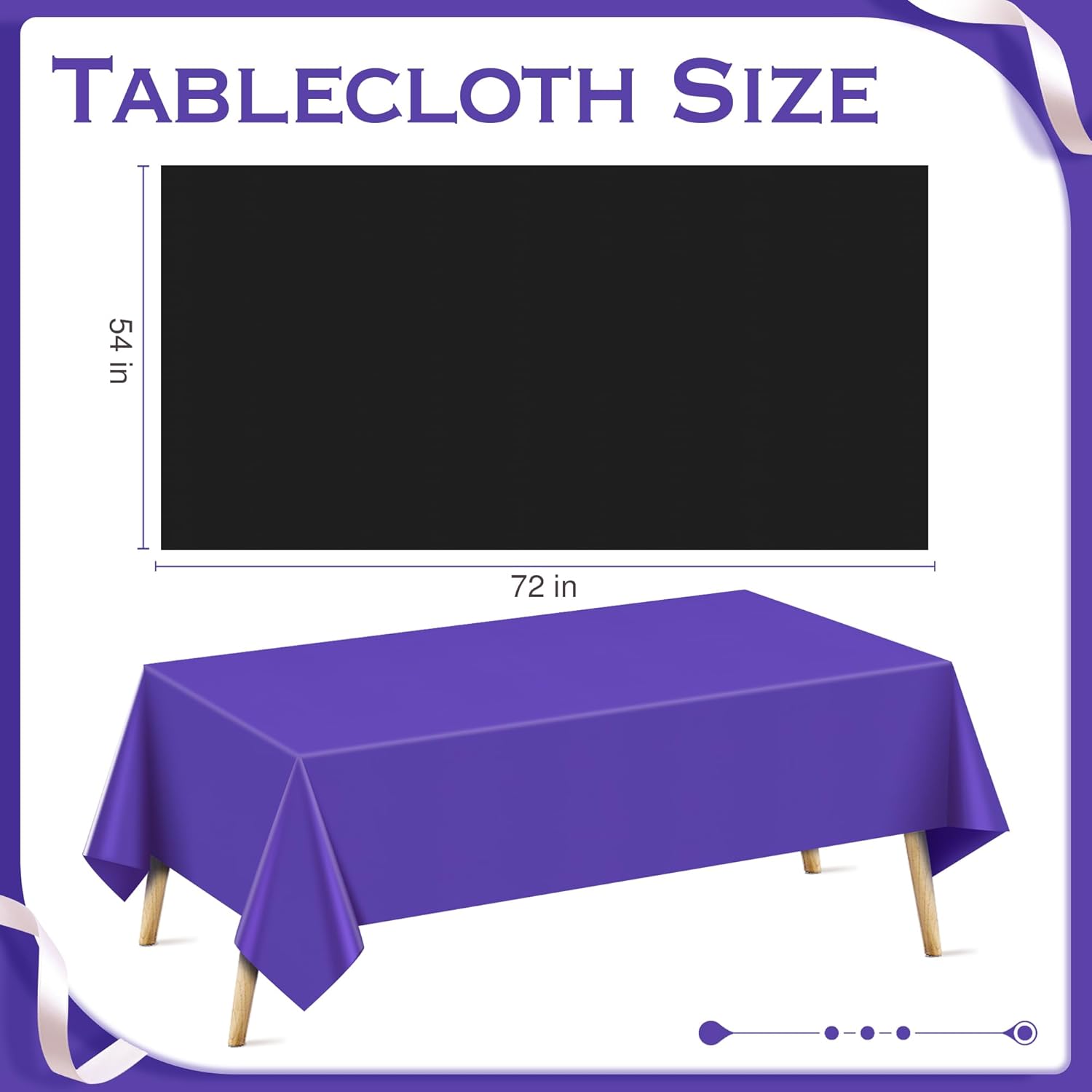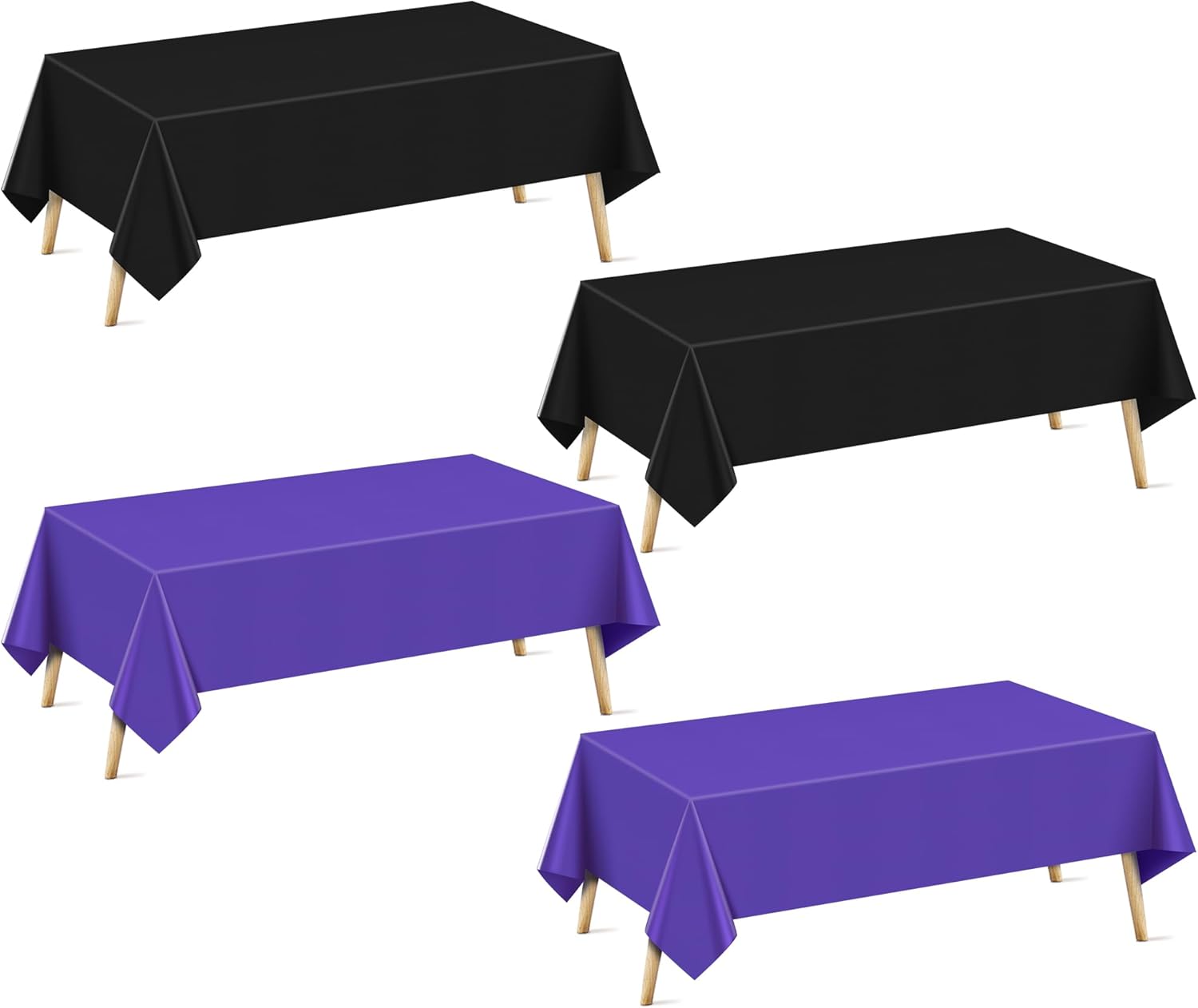 4 Pieces Purple & Black Series Rectangle Tablecloth, 54x72" Solid Color Waterproof & Spillproof Disposable Plastic Table Cover, Durable Party Tablecloth for Dining, Buffet, Picnic, Outdoor Events